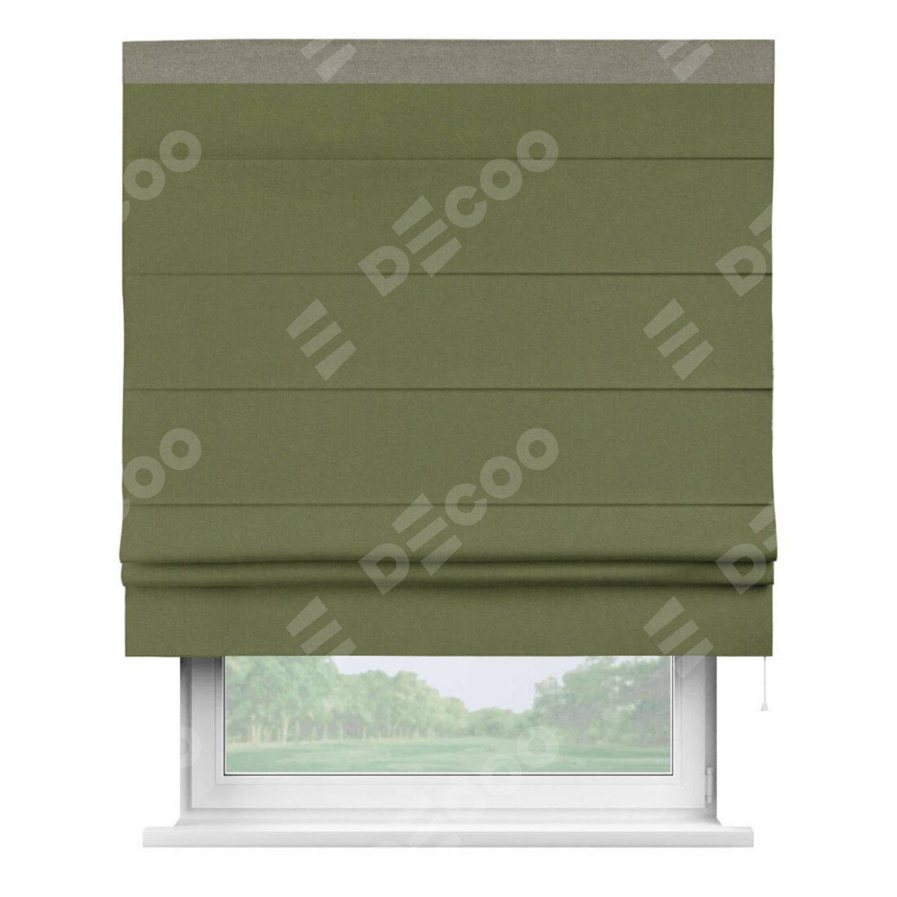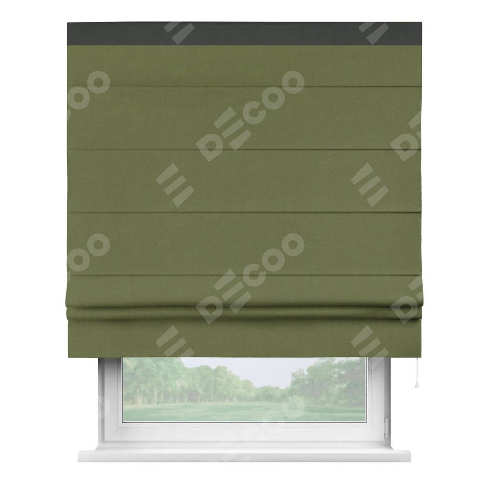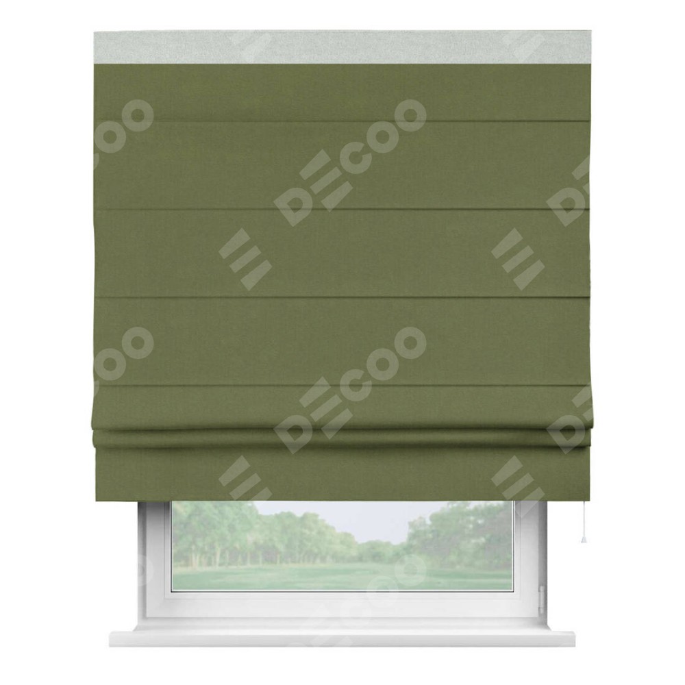 Римская штора «Кортин» с кантом Кинг, для проема, лён блэкаут оливковый
