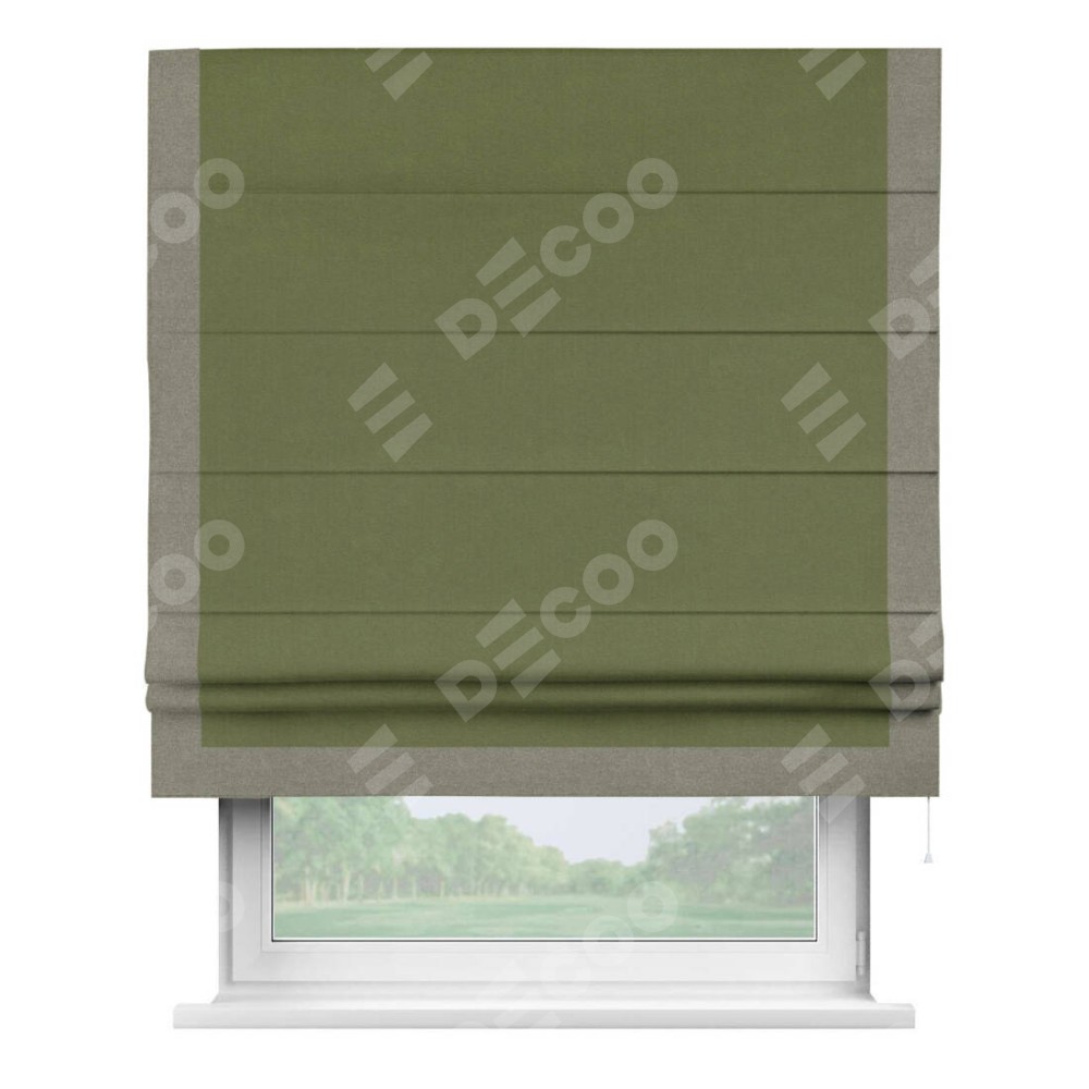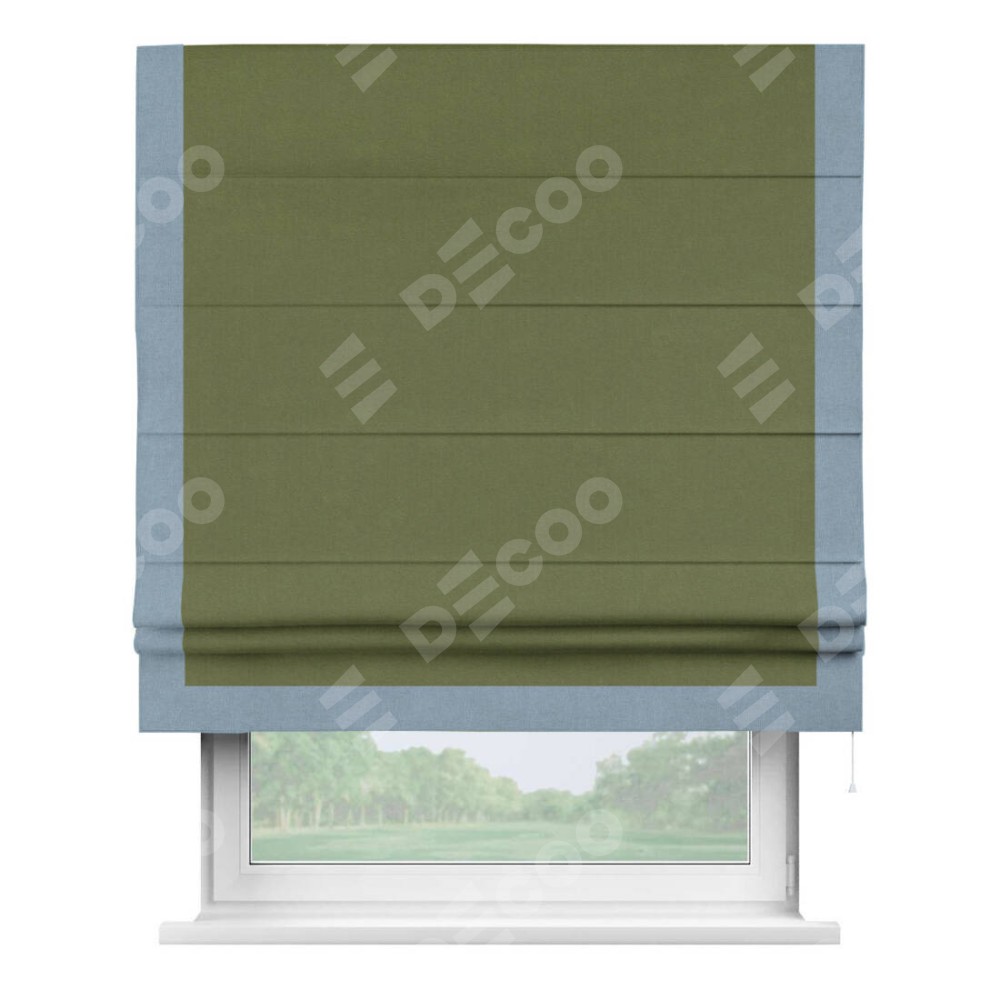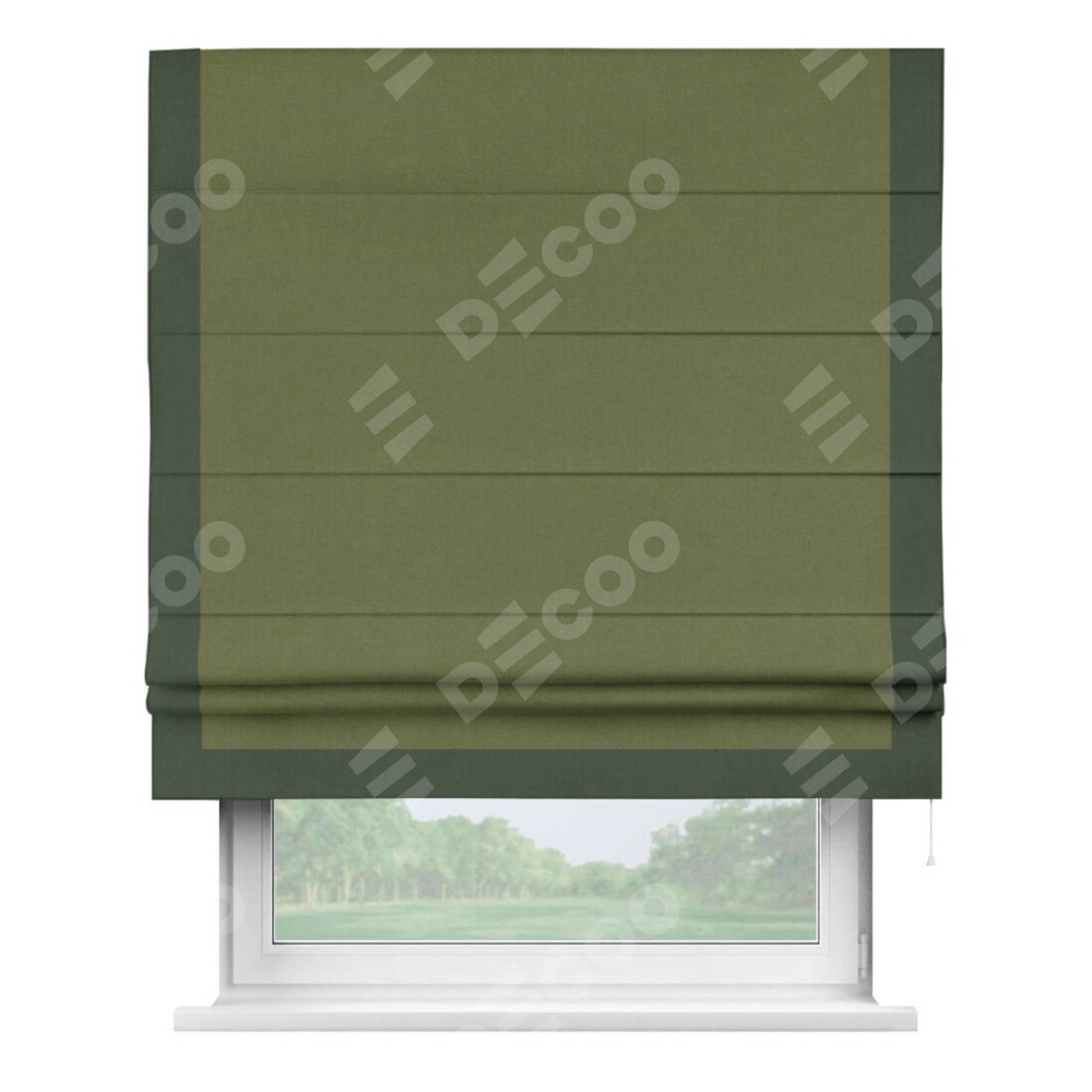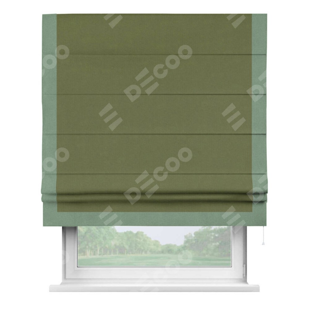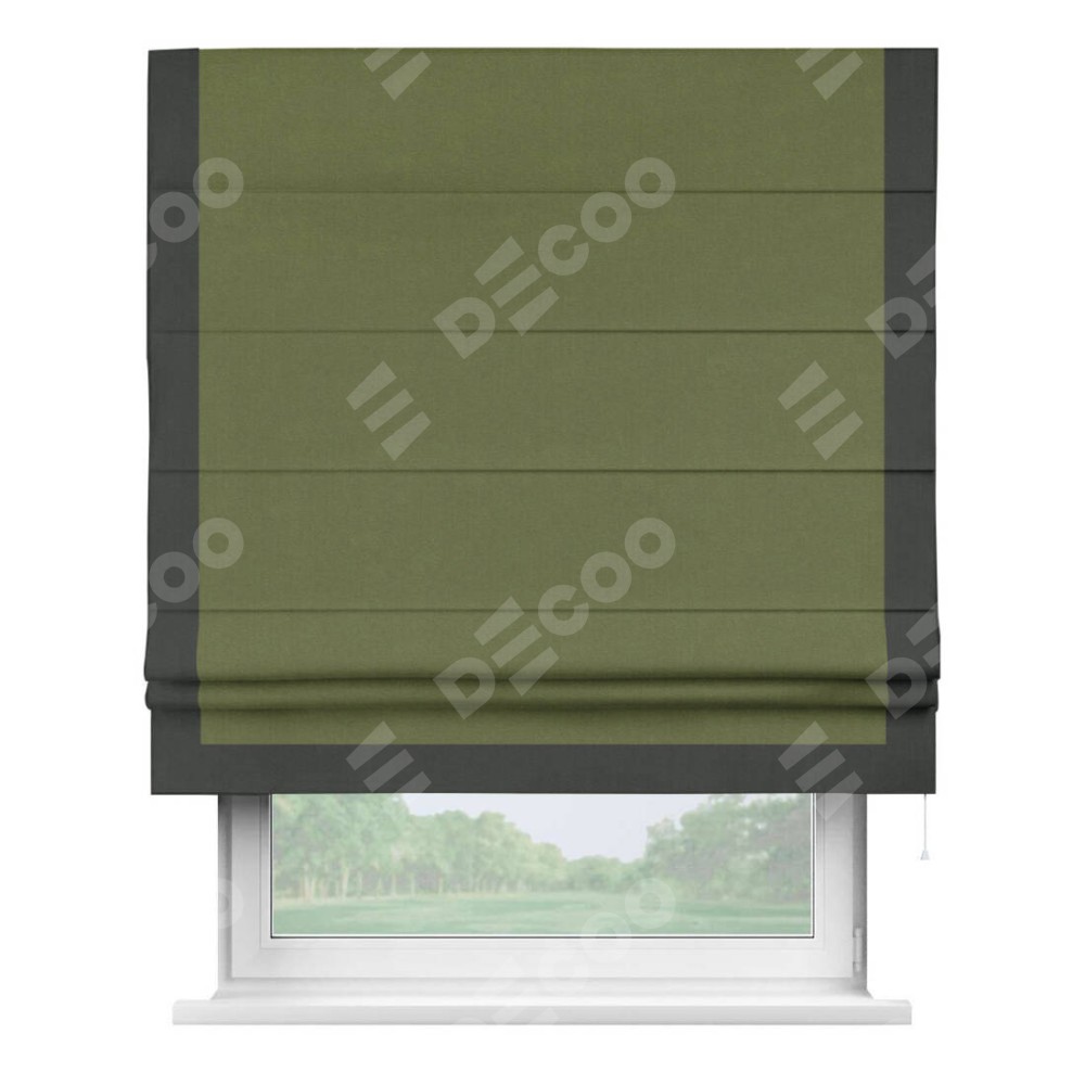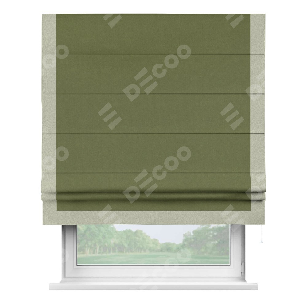 Римская штора «Кортин» с кантом Виктория, для проема, лён блэкаут оливковый