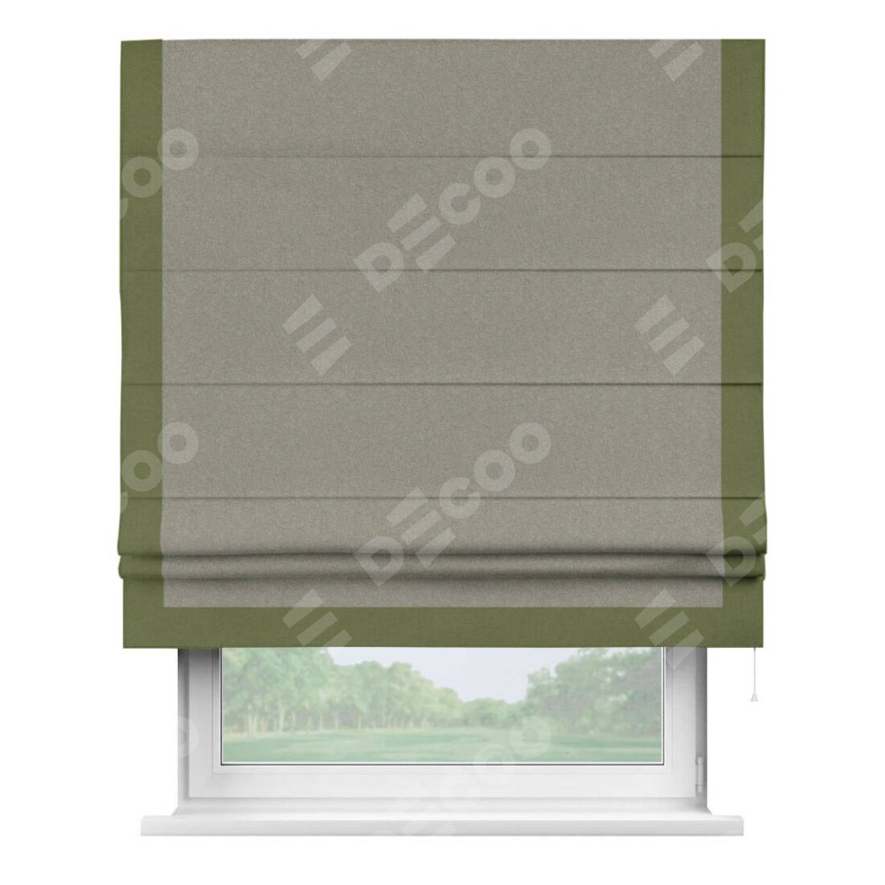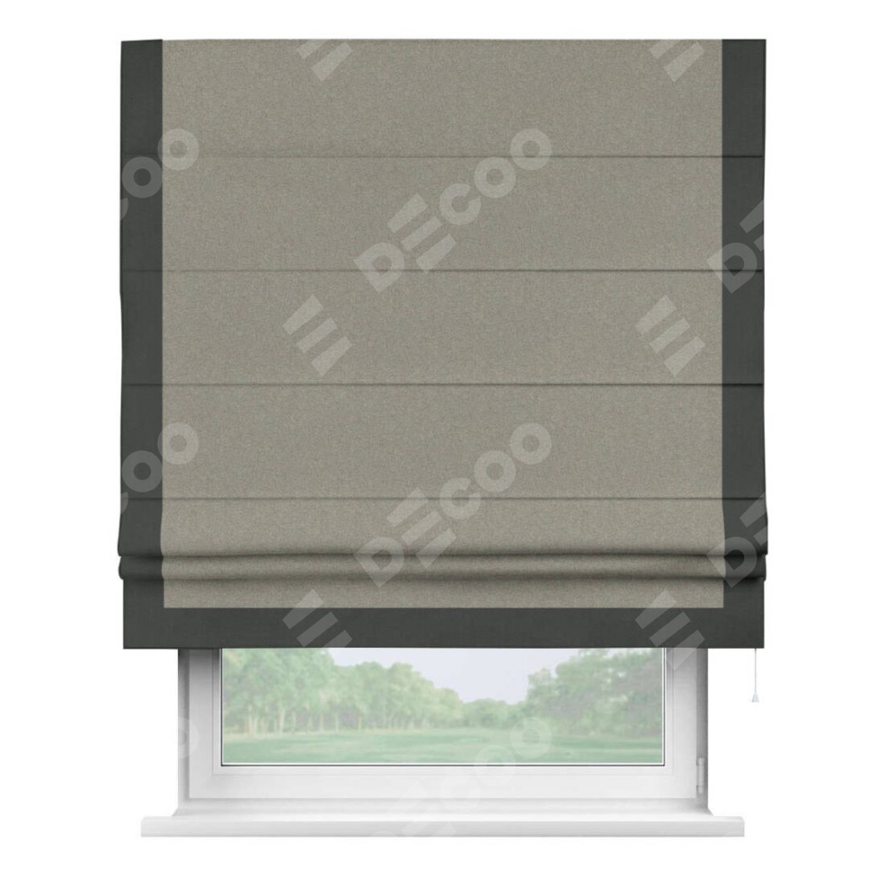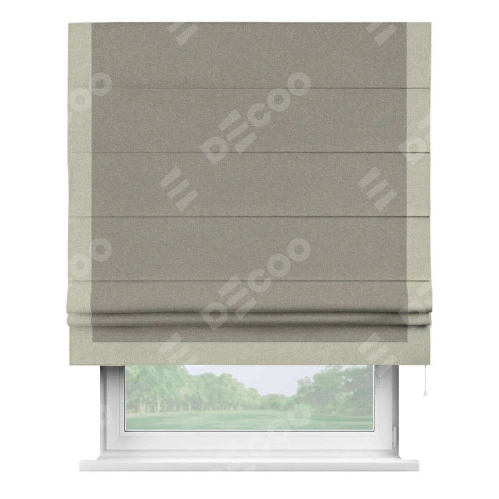 Римская штора производителя «Cortin», используется для проёма, пошита из ткани лён блэкаут светло-бежевый, артикул 69445. Отделка шторы кантом «Виктория», ткань для канта используется из льна разной расцветки на выбор. Имеет универсальный механизм и подходит для монтажа: на потолок, на стену и в нишу.