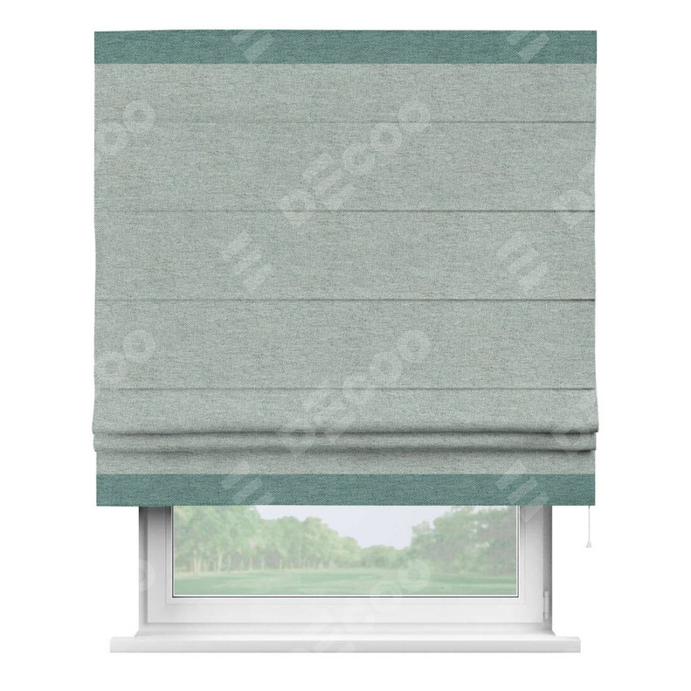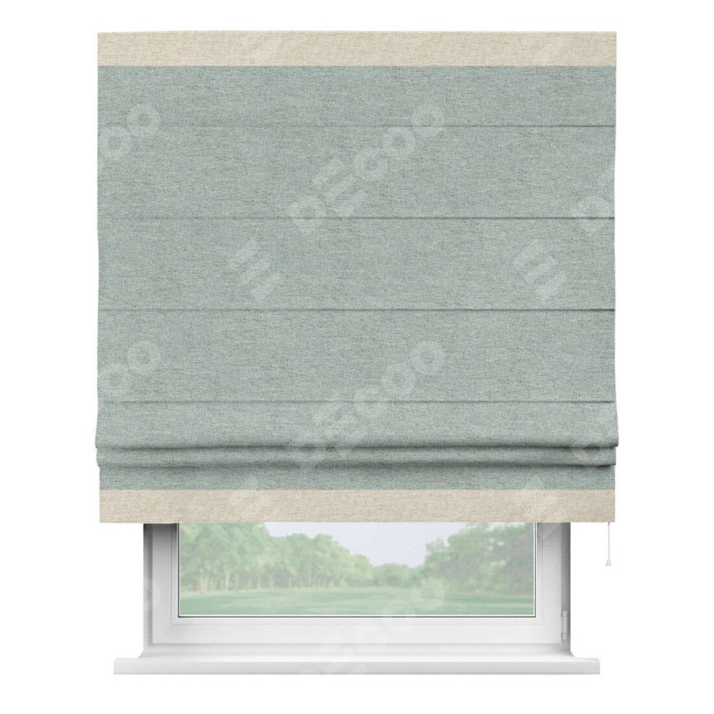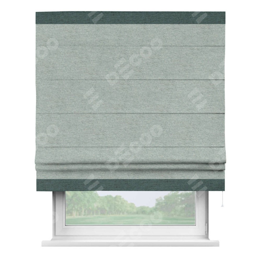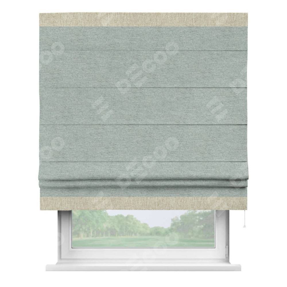 Римская штора производителя «Cortin», используется для проёма, пошита из ткани стиф димаут светло-серый, артикул 44025. Отделка шторы кантом «Горизонт», ткань для канта используется из стифа разной расцветки на выбор. Имеет универсальный механизм и подходит для монтажа: на потолок, на стену и в нишу.
