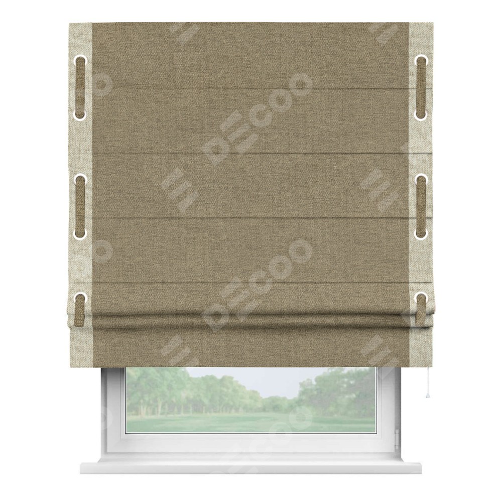 Римская штора «Кортин» с кантом Стрим Дуо (люверсы с пояском), для проема, ткань стиф димаут тёмно-бежевый