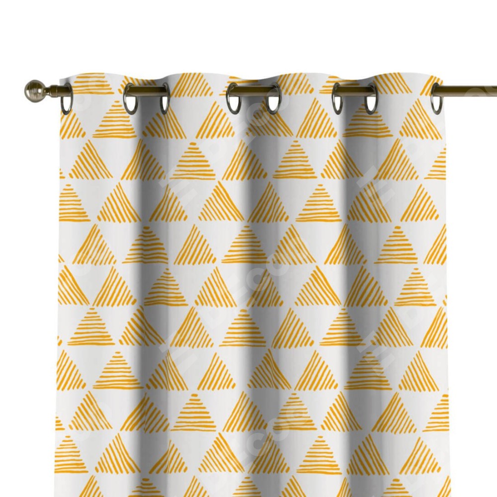 Комплект прямых штор, от производителя «Cortin», пошиты из ткани блэкаут с нанесением сублимационной печати «Желтые треугольники». Данная модель пошита на люверсах, комплектуется на выбор круглым карнизом и подходит для монтажа на стену или потолок. Прямые шторы на люверсах шьются по стандарту с коэффициентом 1/2 (на 100 см. ширины проёма 200 см. ширины ткани), отличительным преимуществом данной модели является простой способ монтажа. Достаточно повесить ее на трубу и штора готова!