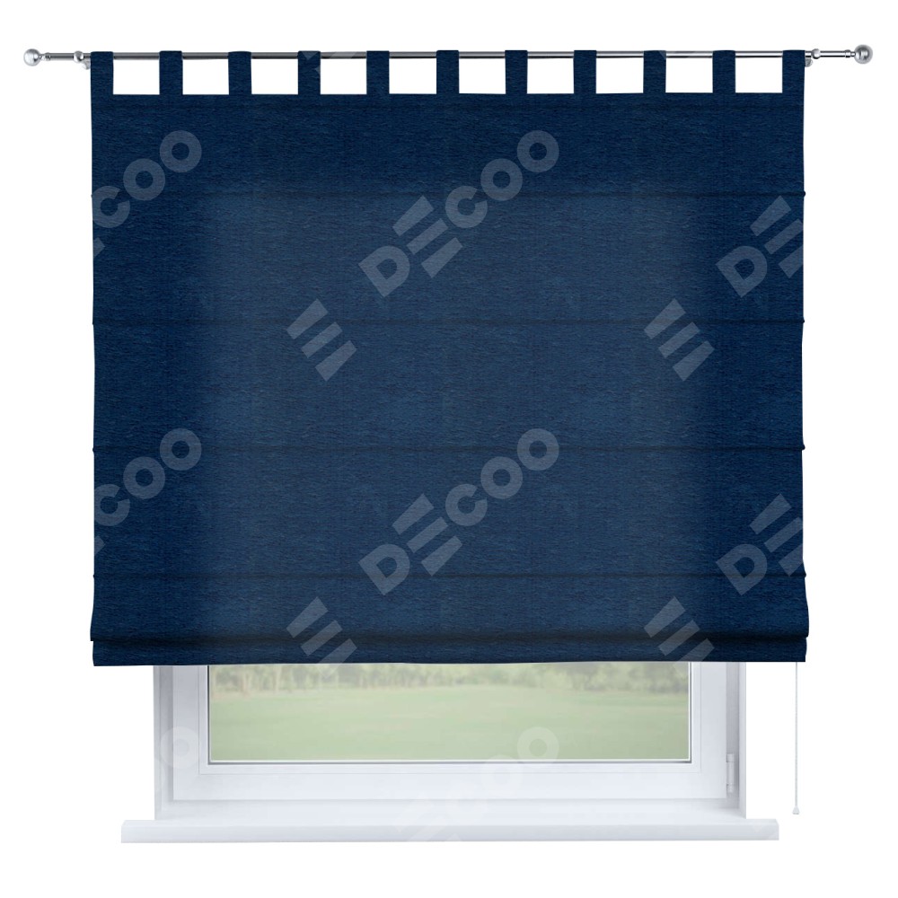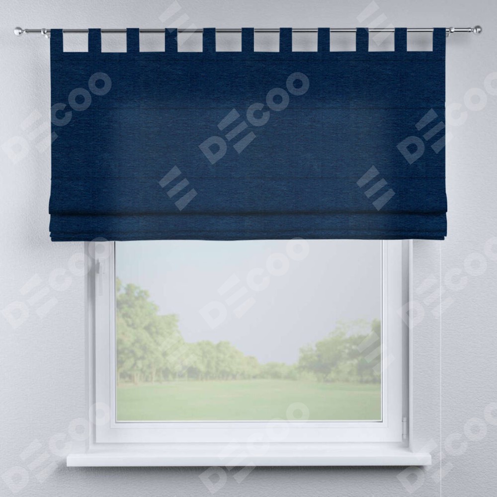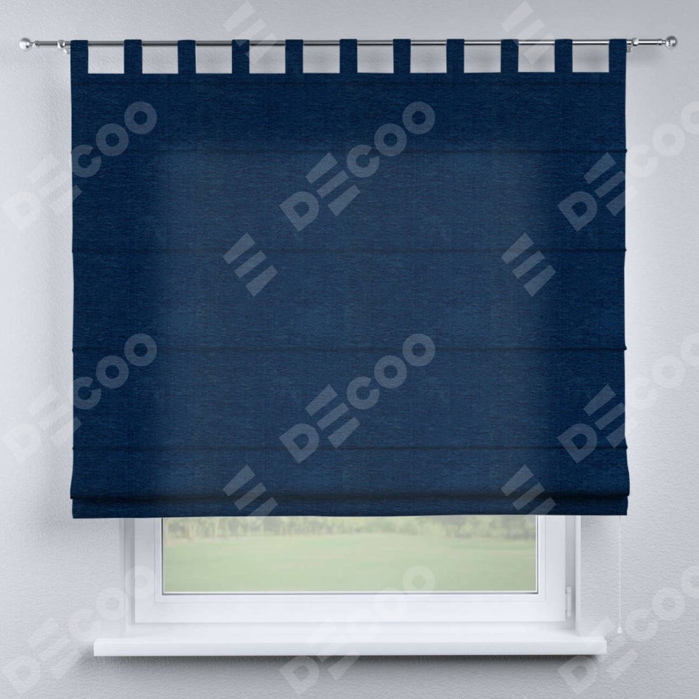 Римская штора производителя «Cortin», используется для проёма, пошита из ткани софт однотонный синий, артикул ткани 42937. Данная модель пошита на петлях, комплектуется на выбор круглым карнизом и подходит для монтажа на стену. Римская штора на петлях имеет простую систему регулировки высоты, отличительным преимуществом данной модели является простой способ монтажа. Достаточно повесить ее на трубу и штора готова!