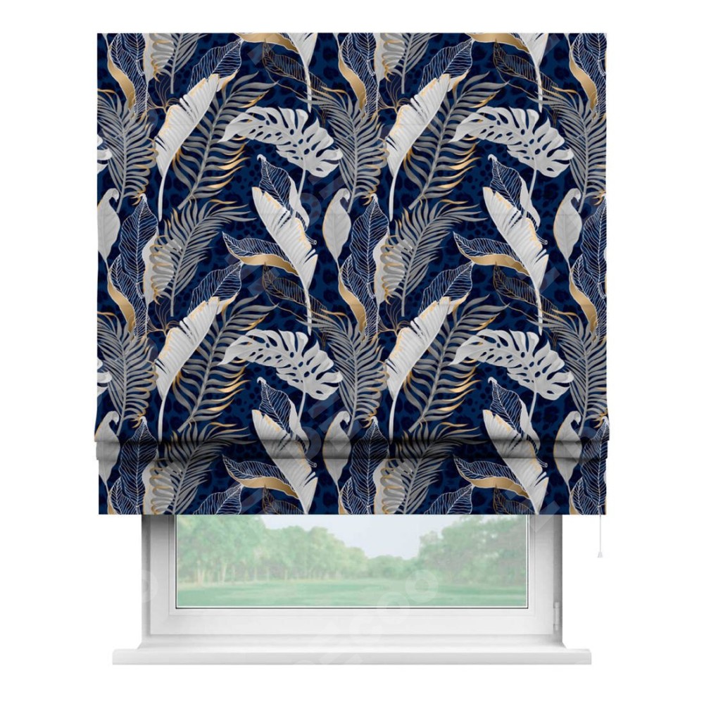 Римская штора «Кортин» для проема «Сине-золотые джунгли»