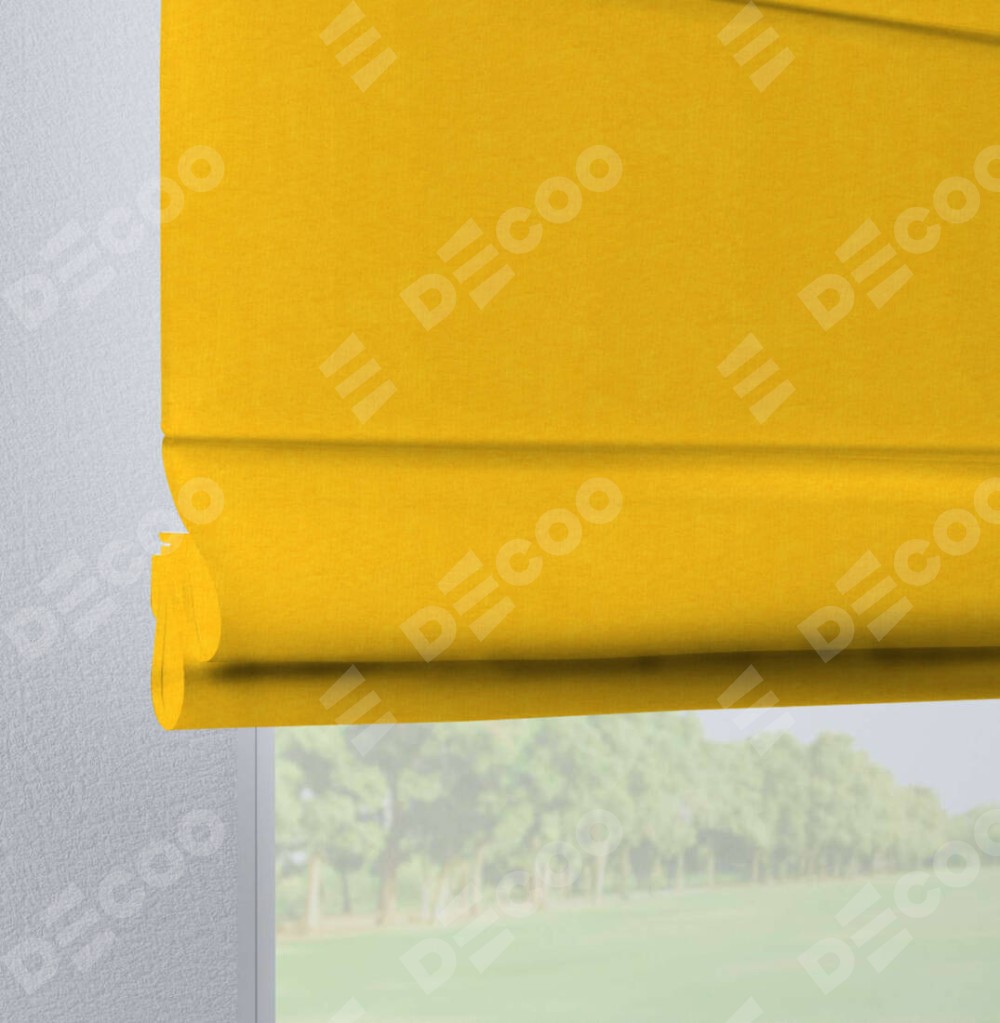 Римская штора производителя «Cortin», используется для проёма, пошита из ткани канвас желтый, артикул ткани v-344. Данная модель пошита на петлях, комплектуется на выбор круглым карнизом и подходит для монтажа на стену. Римская штора на петлях имеет простую систему регулировки высоты, отличительным преимуществом данной модели является простой способ монтажа. Достаточно повесить ее на трубу и штора готова!