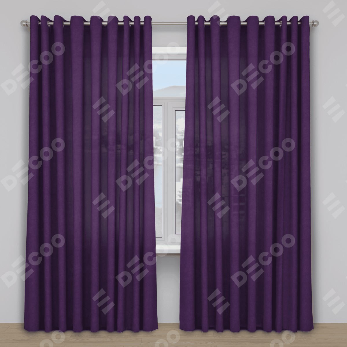 Комплект прямых штор, от производителя «Cortin», пошиты из ткани вельвет тёмно-фиолетовый, артикул ткани 17753. Данная модель пошита на люверсах, комплектуется на выбор круглым карнизом и подходит для монтажа на стену. Прямые шторы на люверсах шьются по стандарту с коэффициентом 1/2 (на 100 см. ширины проёма 200 см. ширины ткани), отличительным преимуществом данной модели является простой способ монтажа. Достаточно повесить ее на трубу и штора готова!