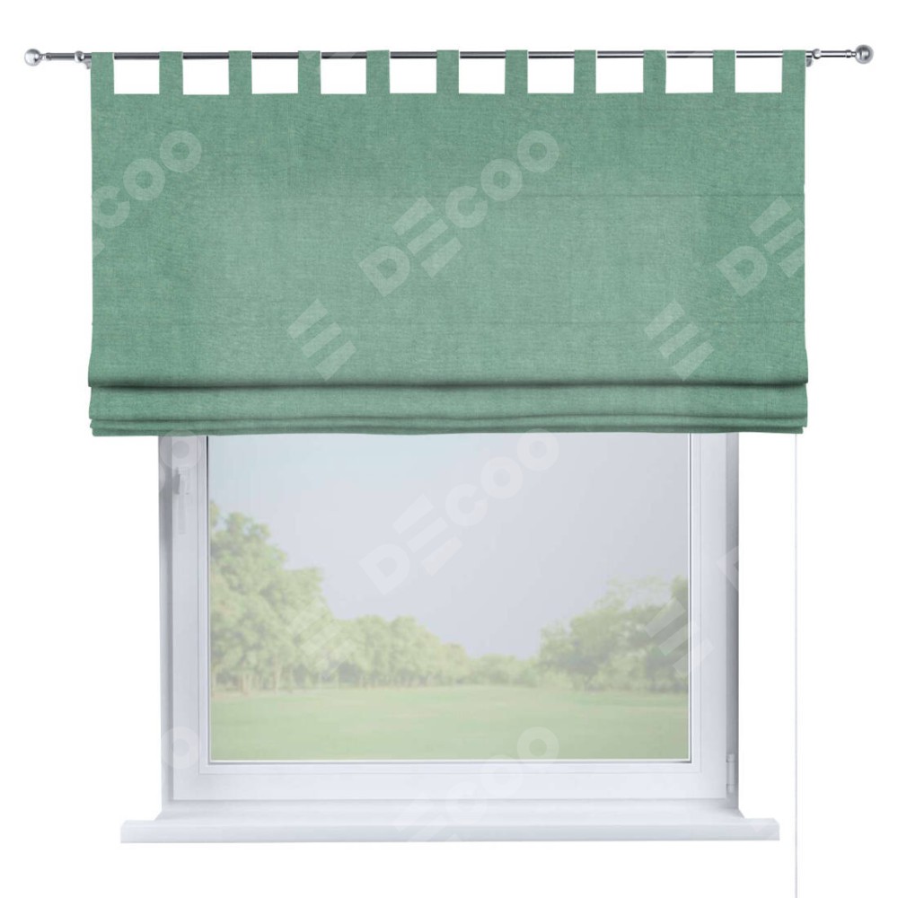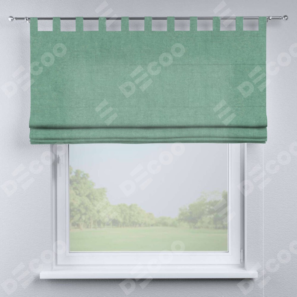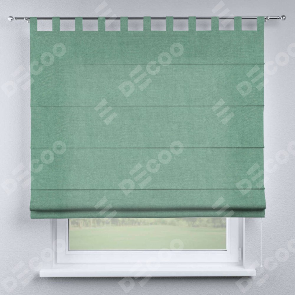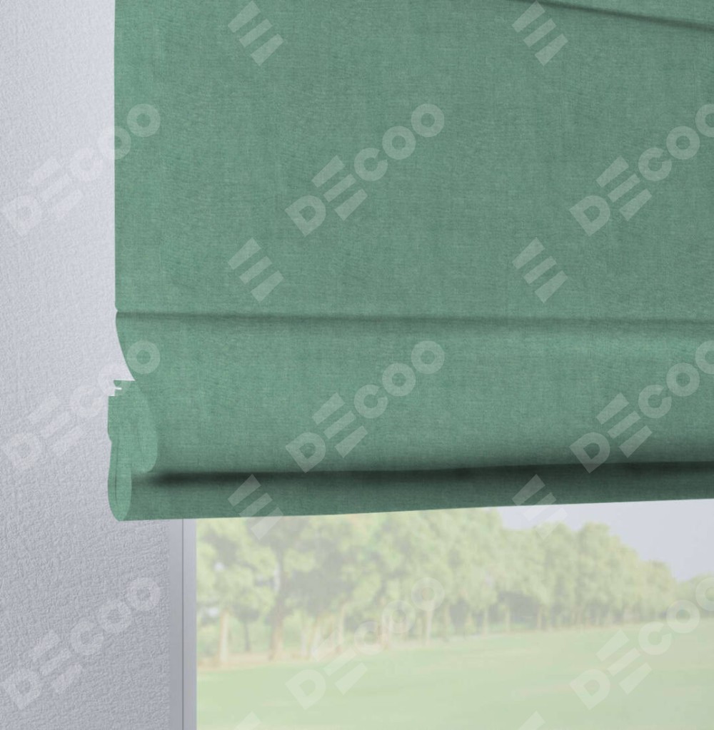 Римская штора производителя «Cortin», используется для проёма, пошита из ткани канвас мятный, артикул ткани v-248. Данная модель пошита на петлях, комплектуется на выбор круглым карнизом и подходит для монтажа на стену. Римская штора на петлях имеет простую систему регулировки высоты, отличительным преимуществом данной модели является простой способ монтажа. Достаточно повесить ее на трубу и штора готова!