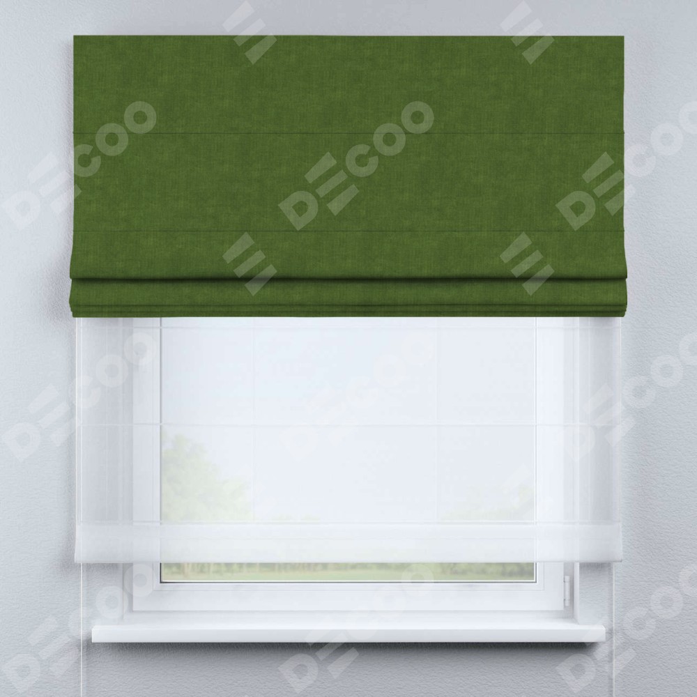 Римская штора день-ночь производителя «Cortin», используется для проёма, пошита из двух полотен, с лицевой стороны канвас трава артикул v-473, вторая ткань тюль (по стандарту комплектуется тюль белого цвета артикул V-01). Имеет универсальный механизм и подходит для монтажа: на потолок, на стену и в нишу.