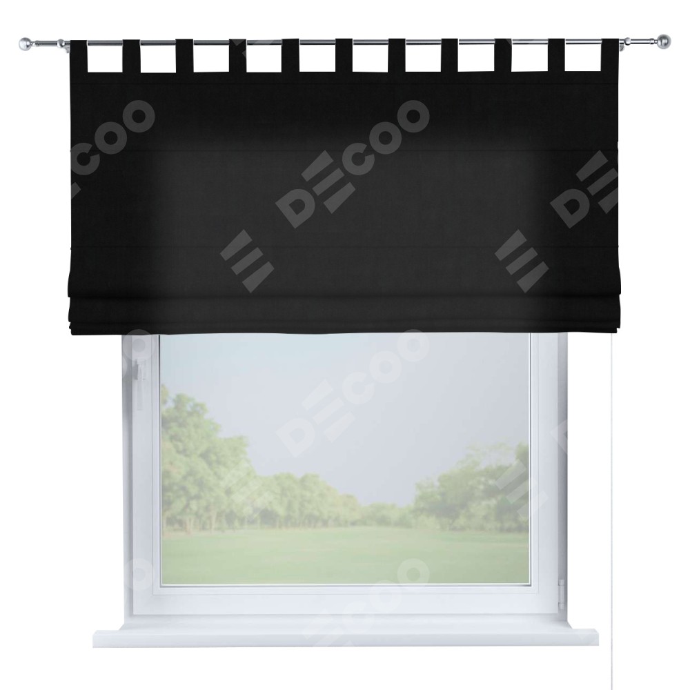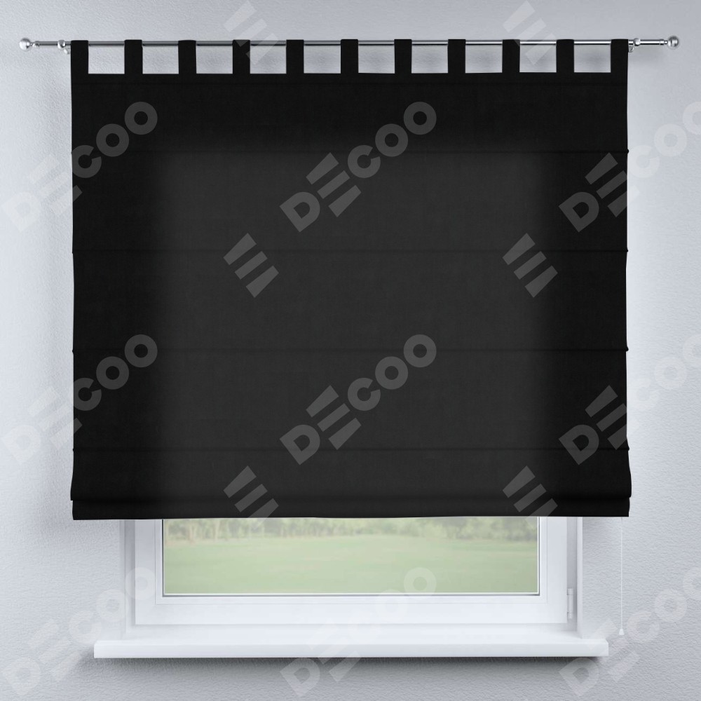 Римская штора производителя «Cortin», используется для проёма, пошита из ткани канвас черный, артикул ткани v-194. Данная модель пошита на петлях, комплектуется на выбор круглым карнизом и подходит для монтажа на стену. Римская штора на петлях имеет простую систему регулировки высоты, отличительным преимуществом данной модели является простой способ монтажа. Достаточно повесить ее на трубу и штора готова!