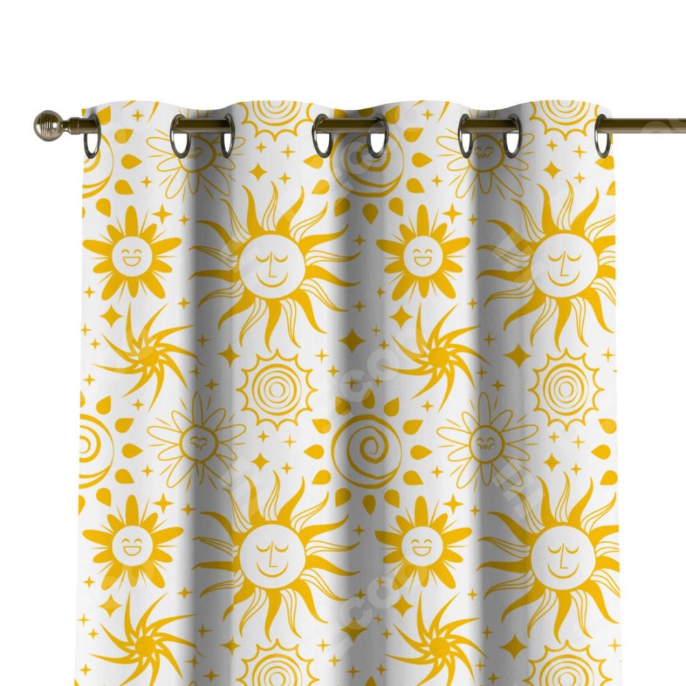 Комплект прямых штор, от производителя «Cortin», пошиты из ткани блэкаут с нанесением сублимационной печати «Солнышки». Данная модель пошита на люверсах, комплектуется на выбор круглым карнизом и подходит для монтажа на стену или потолок. Прямые шторы на люверсах шьются по стандарту с коэффициентом 1/2 (на 100 см. ширины проёма 200 см. ширины ткани), отличительным преимуществом данной модели является простой способ монтажа. Достаточно повесить ее на трубу и штора готова!