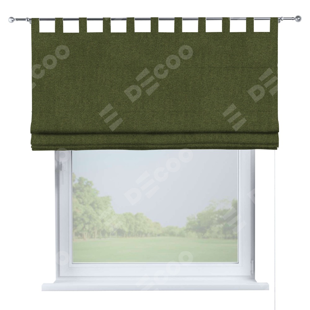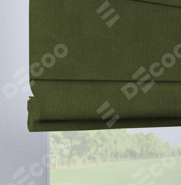 Римская штора производителя «Cortin», используется для проёма, пошита из ткани лён димаут салатовый, артикул ткани 91002. Данная модель пошита на петлях, комплектуется на выбор круглым карнизом и подходит для монтажа на стену. Римская штора на петлях имеет простую систему регулировки высоты, отличительным преимуществом данной модели является простой способ монтажа. Достаточно повесить ее на трубу и штора готова!