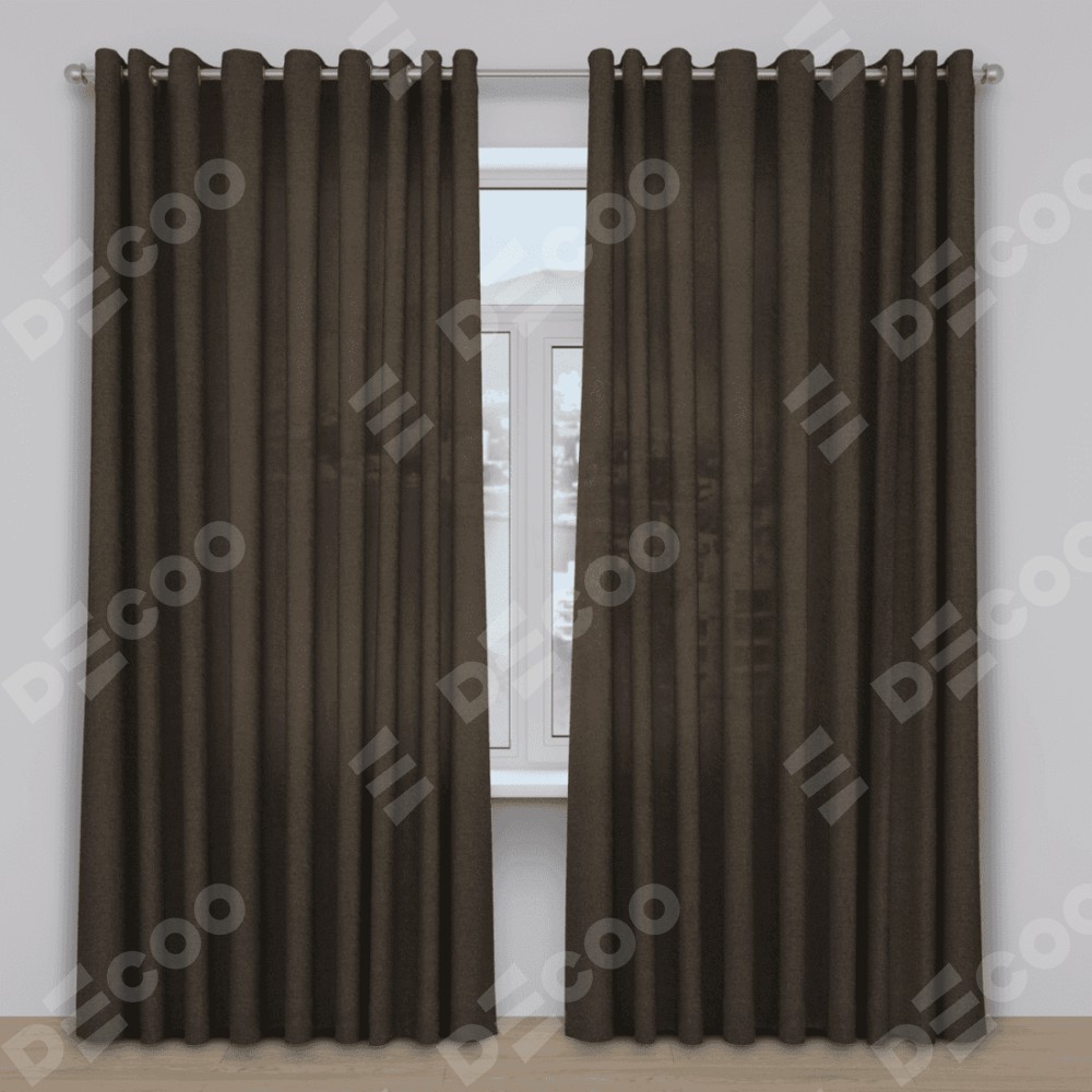 Комплект прямых штор, от производителя «Cortin», пошиты из ткани лён тёмно-коричневый, артикул ткани 53444. Данная модель пошита на люверсах, комплектуется на выбор круглым карнизом и подходит для монтажа на стену. Прямые шторы на люверсах шьются по стандарту с коэффициентом 1/2 (на 100 см. ширины проёма 200 см. ширины ткани), отличительным преимуществом данной модели является простой способ монтажа. Достаточно повесить ее на трубу и штора готова!