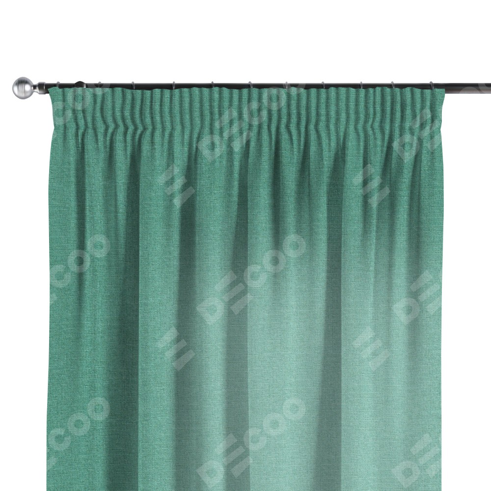 Комплект прямых штор, от производителя «Cortin», пошиты из ткани лён светло-бирюзовый, артикул ткани 53435. С изнаночной стороны в верхней части штор пристрачивается шторная лента с декоративными складками «Карандаш». Для создания элегантных складок прямые шторы шьются по стандарту с коэффициентом 1:2 (на 100 см. ширины проёма 200 см. ширины ткани).