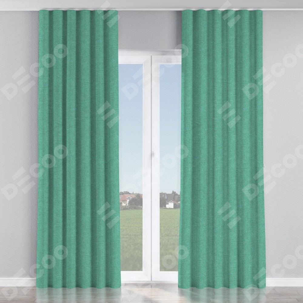 Комплект прямых штор, от производителя «Cortin», пошиты из ткани лён светло-бирюзовый, артикул ткани 53435. С изнаночной стороны в верхней части штор пристрачивается шторная лента с декоративными складками «Волна». Для создания элегантных складок прямые шторы шьются по стандарту с коэффициентом 1:2 (на 100 см. ширины проёма 200 см. ширины ткани).
