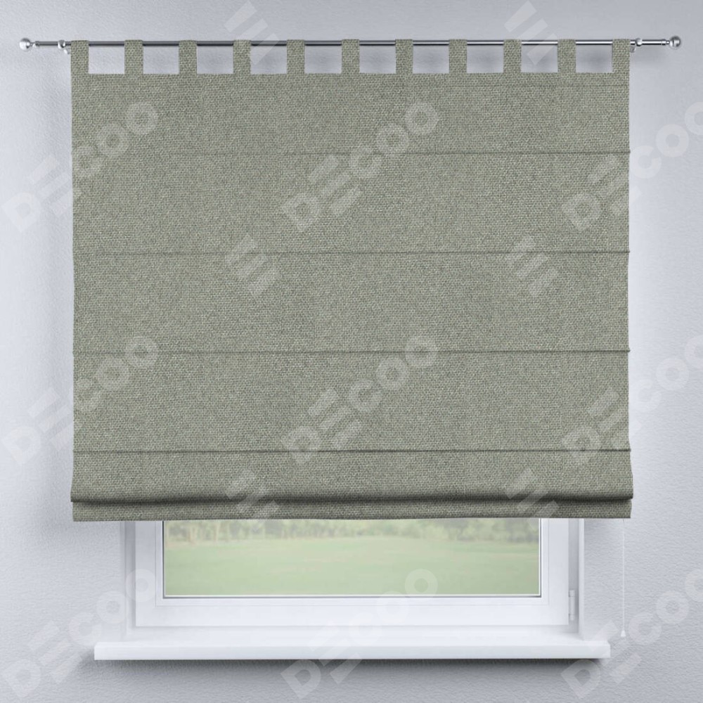 Римская штора производителя «Cortin», используется для проёма, пошита из ткани лён димаут серый, артикул ткани 91009. Данная модель пошита на петлях, комплектуется на выбор круглым карнизом и подходит для монтажа на стену. Римская штора на петлях имеет простую систему регулировки высоты, отличительным преимуществом данной модели является простой способ монтажа. Достаточно повесить ее на трубу и штора готова!