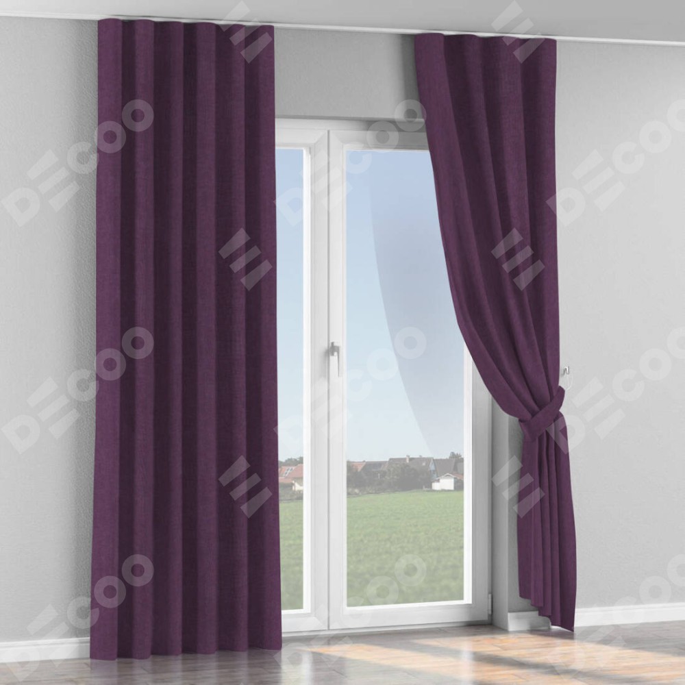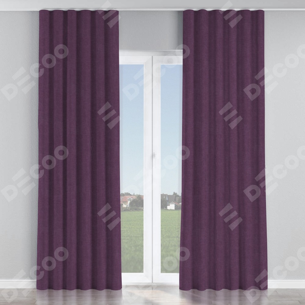 Комплект прямых штор, от производителя «Cortin», пошиты из ткани канвас баклажановый, артикул ткани v-111. С изнаночной стороны в верхней части штор пристрачивается шторная лента с декоративными складками «Волна». Для создания элегантных складок прямые шторы шьются по стандарту с коэффициентом 1:2 (на 100 см. ширины проёма 200 см. ширины ткани).