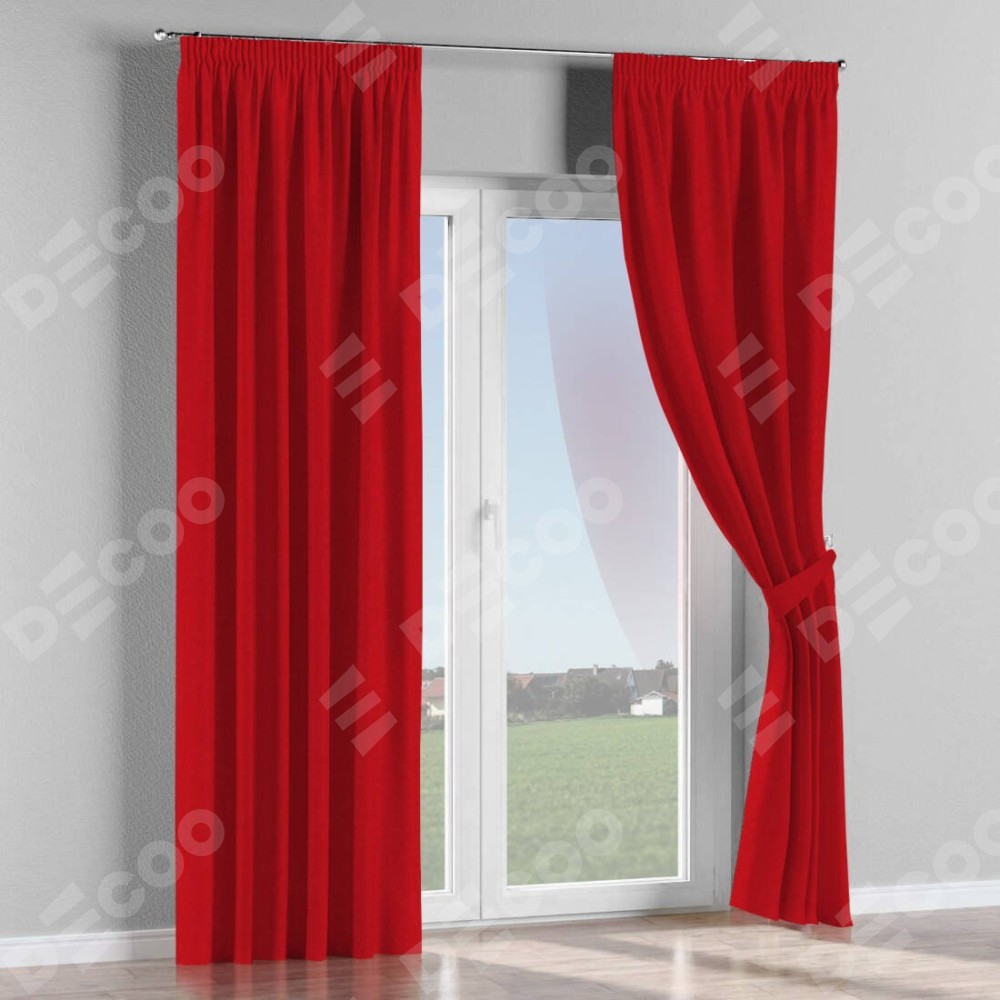 Комплект штор канвас красный, на тесьме «Карандаш»