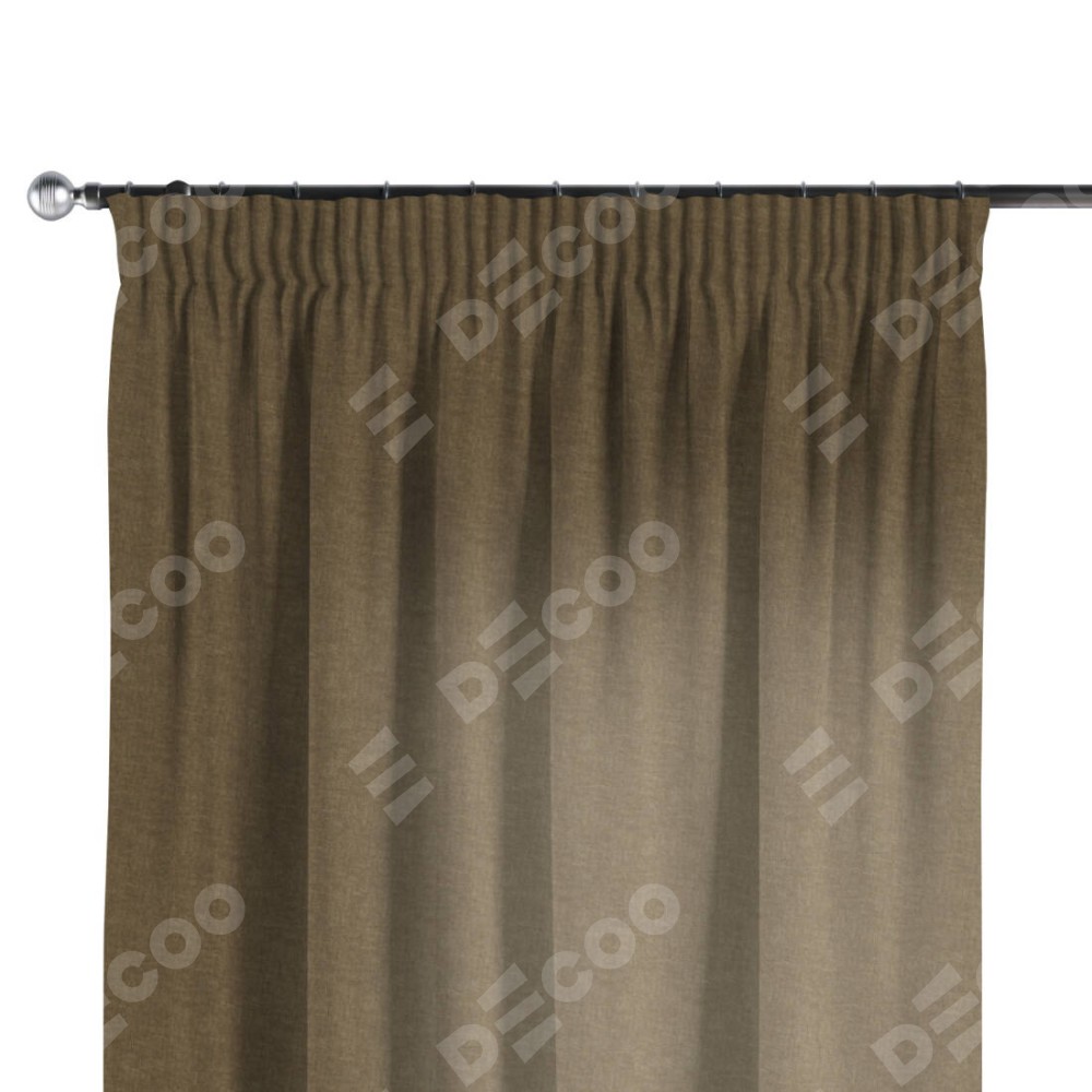 Комплект прямых штор, от производителя «Cortin», пошиты из ткани канвас молочный шоколад, артикул ткани v-08. С изнаночной стороны в верхней части штор пристрачивается шторная лента с декоративными складками «Карандаш». Для создания элегантных складок прямые шторы шьются по стандарту с коэффициентом 1:2 (на 100 см. ширины проёма 200 см. ширины ткани).