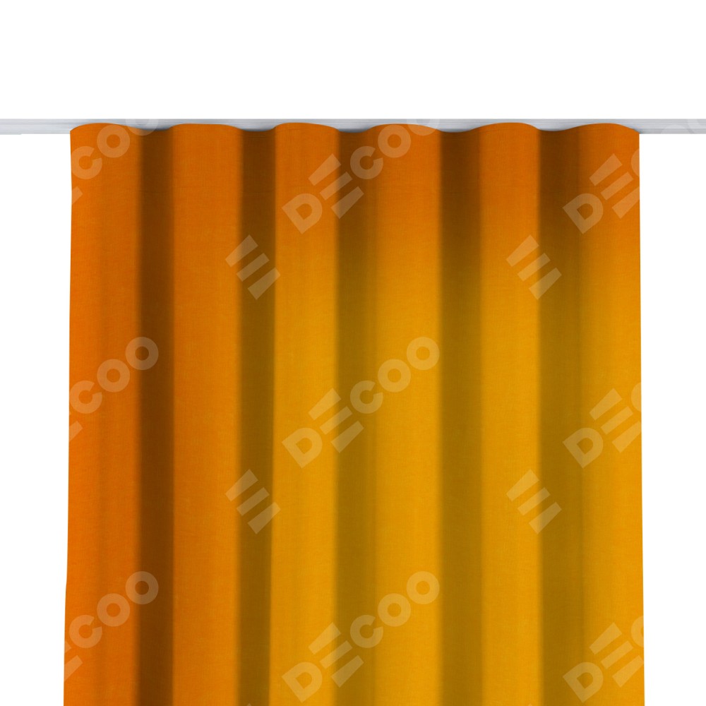 Комплект прямых штор, от производителя «Cortin», пошиты из ткани канвас оранжевый, артикул ткани v-106. С изнаночной стороны в верхней части штор пристрачивается шторная лента с декоративными складками «Волна». Для создания элегантных складок прямые шторы шьются по стандарту с коэффициентом 1:2 (на 100 см. ширины проёма 200 см. ширины ткани).
