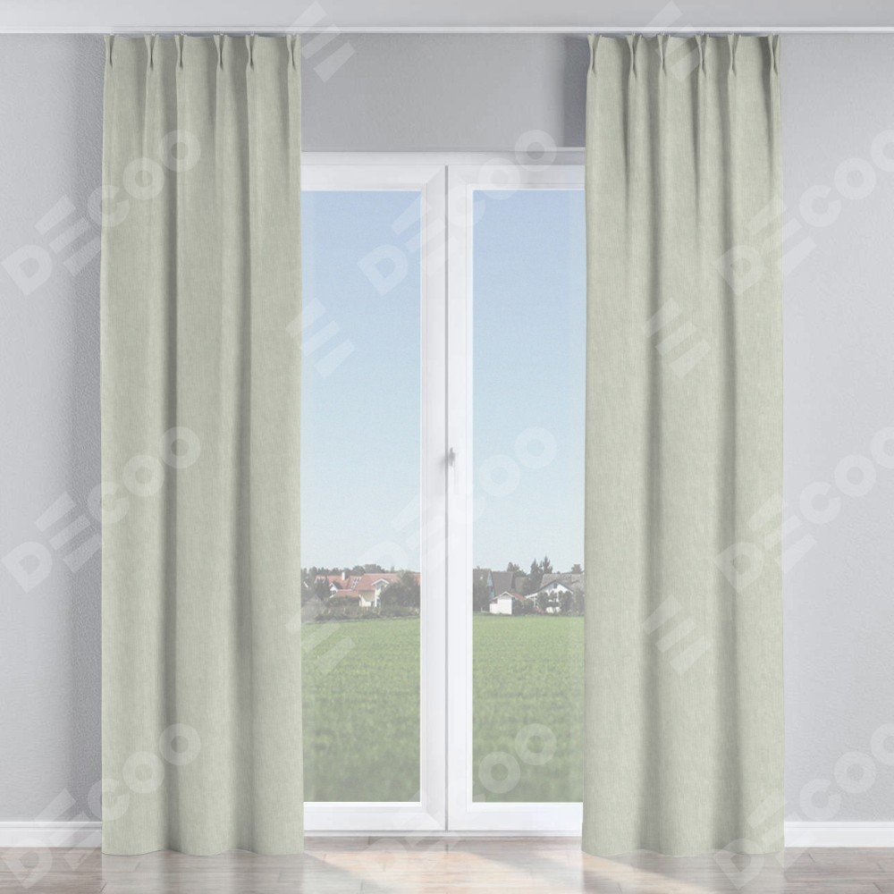 Комплект прямых штор, от производителя «Cortin», пошиты из ткани канвас светло-серый, артикул ткани v-371. С изнаночной стороны в верхней части штор пристрачивается шторная лента с декоративными складками «Кустик». Для создания элегантных складок прямые шторы шьются по стандарту с коэффициентом 1:2 (на 100 см. ширины проёма 200 см. ширины ткани).
