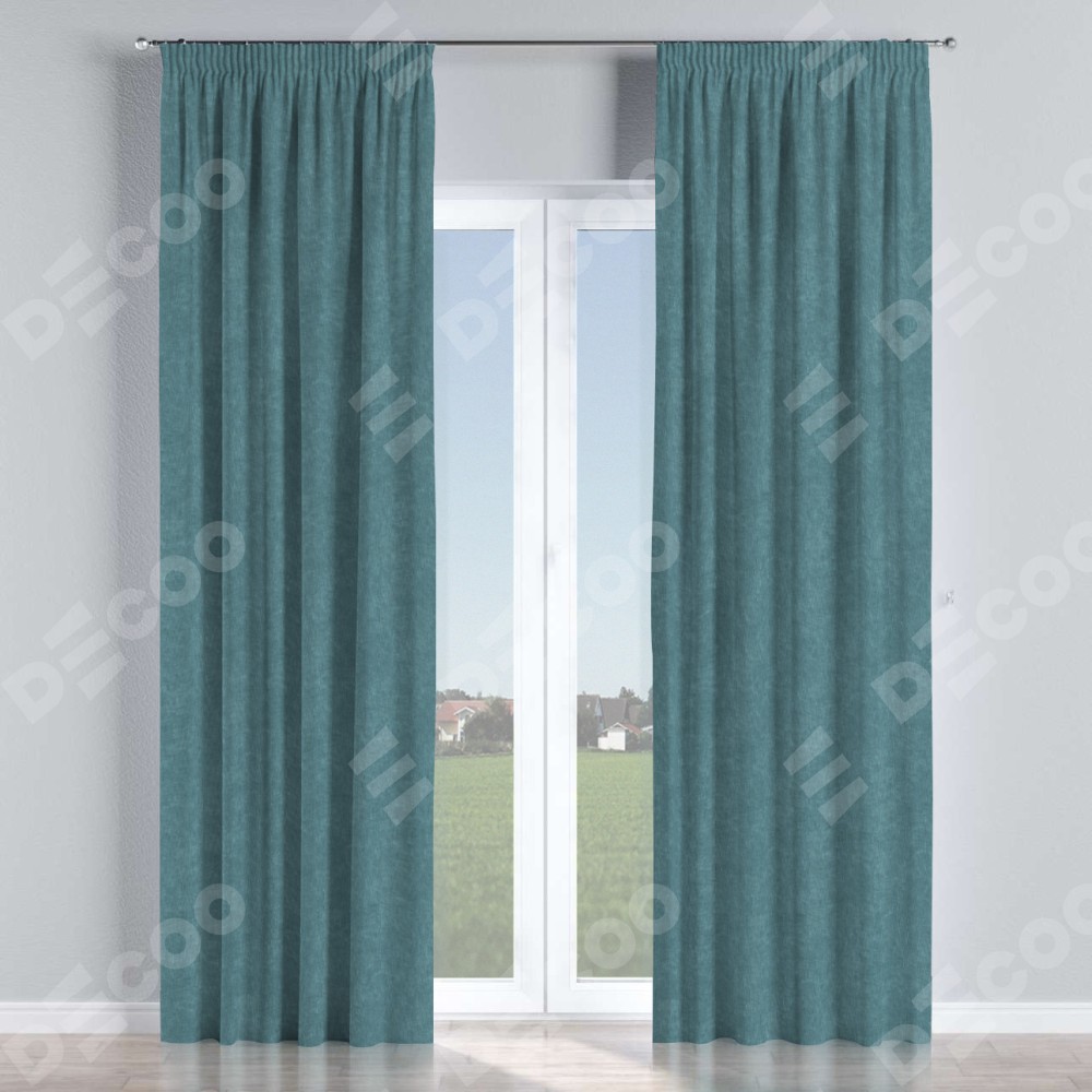 Комплект прямых штор, от производителя «Cortin», пошиты из ткани канвас серо-голубой, артикул ткани v-330. С изнаночной стороны в верхней части штор пристрачивается шторная лента с декоративными складками «Карандаш». Для создания элегантных складок прямые шторы шьются по стандарту с коэффициентом 1:2 (на 100 см. ширины проёма 200 см. ширины ткани).
