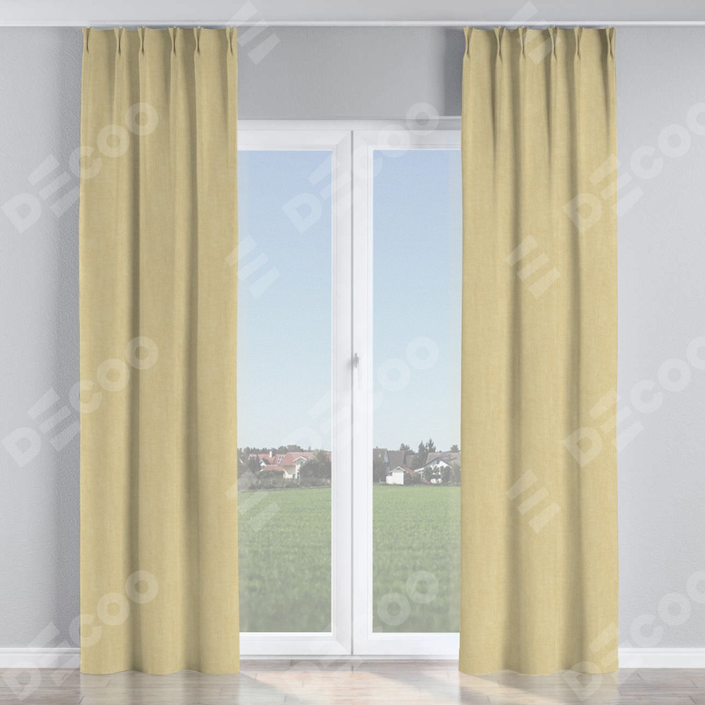 Комплект прямых штор, от производителя «Cortin», пошиты из ткани канвас тёмно-бежевый, артикул ткани v-196. С изнаночной стороны в верхней части штор пристрачивается шторная лента с декоративными складками «Кустик». Для создания элегантных складок прямые шторы шьются по стандарту с коэффициентом 1:2 (на 100 см. ширины проёма 200 см. ширины ткани).