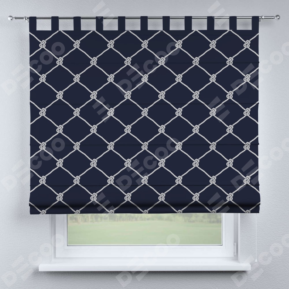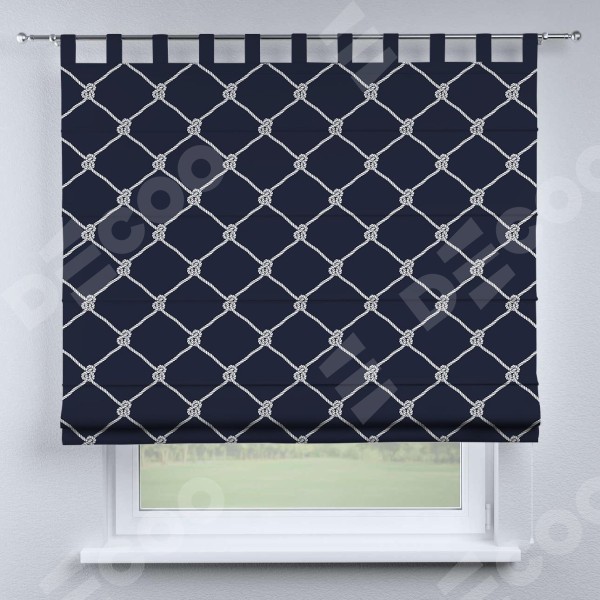 Римская штора производителя «Cortin», используется для проёма, пошита из ткани блэкаут с нанесением сублимационной печати «Морские веревки». Данная модель пошита на петлях, комплектуется на выбор круглым карнизом и подходит для монтажа на стену. Римская штора на петлях имеет простую систему регулировки высоты, отличительным преимуществом данной модели является простой способ монтажа. Достаточно повесить ее на трубу и штора готова!