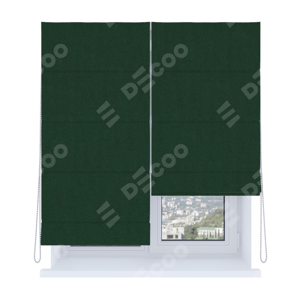 Римская штора «Кортин», блэкаут однотонный зелёный, система «Комфорт»