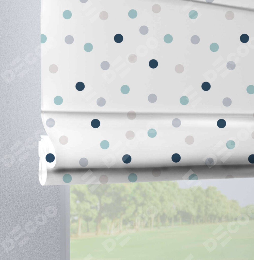 Римская штора производителя «Cortin», используется для проёма, пошита из ткани блэкаут с нанесением сублимационной печати «Точки». Данная модель пошита на петлях, комплектуется на выбор круглым карнизом и подходит для монтажа на стену. Римская штора на петлях имеет простую систему регулировки высоты, отличительным преимуществом данной модели является простой способ монтажа. Достаточно повесить ее на трубу и штора готова!
