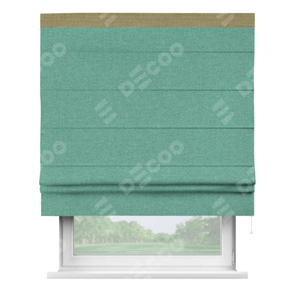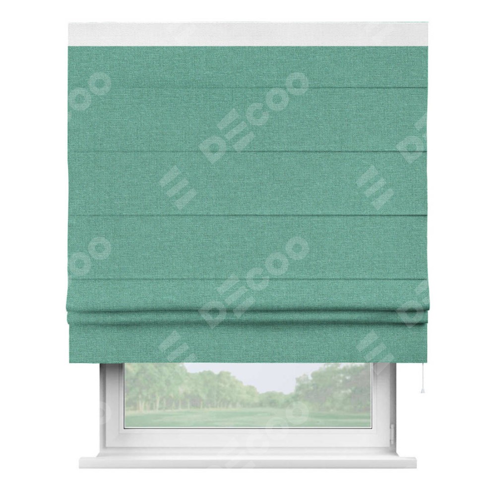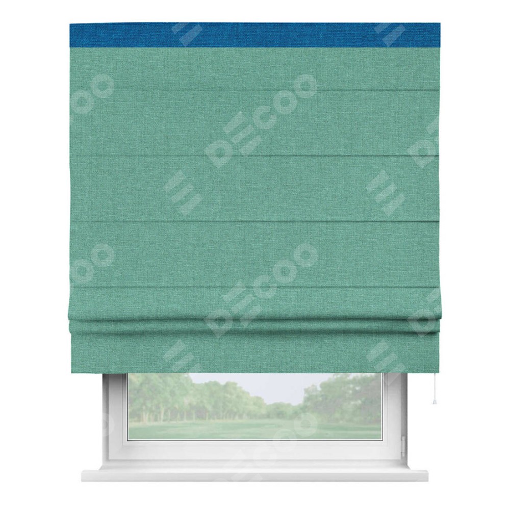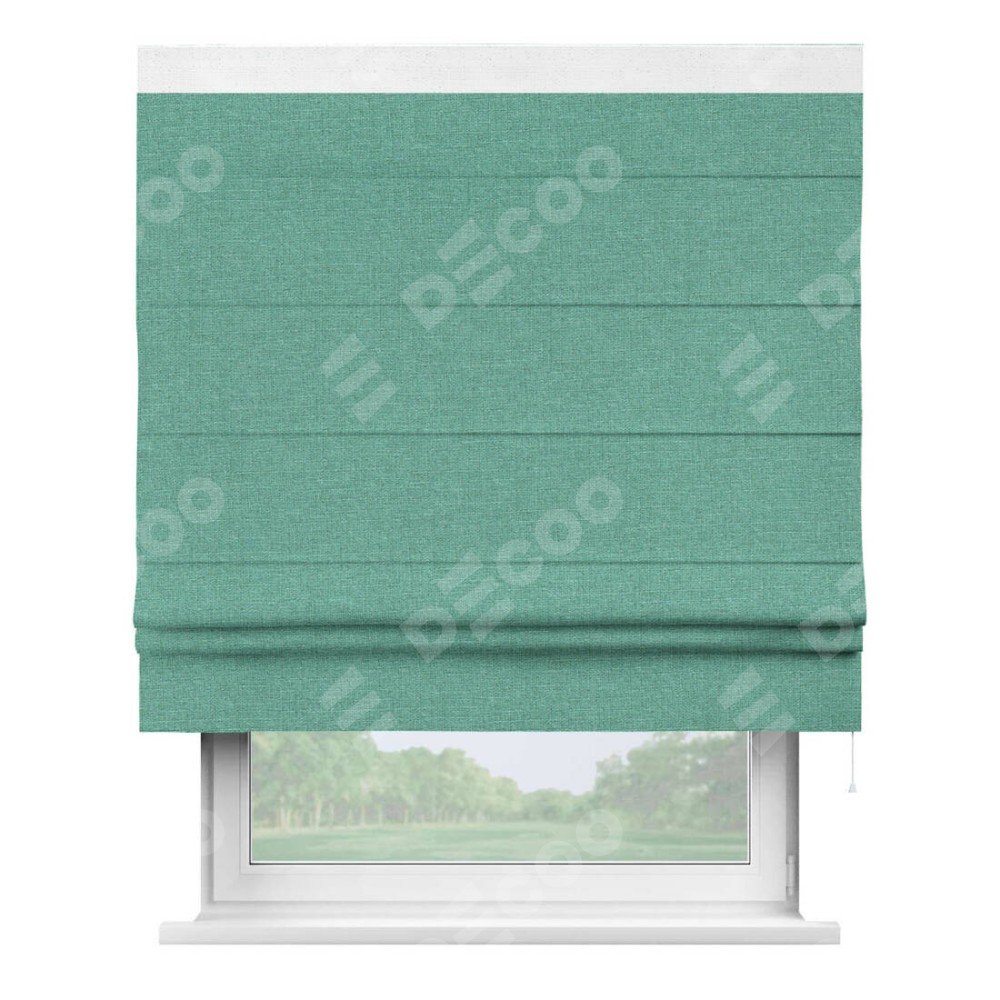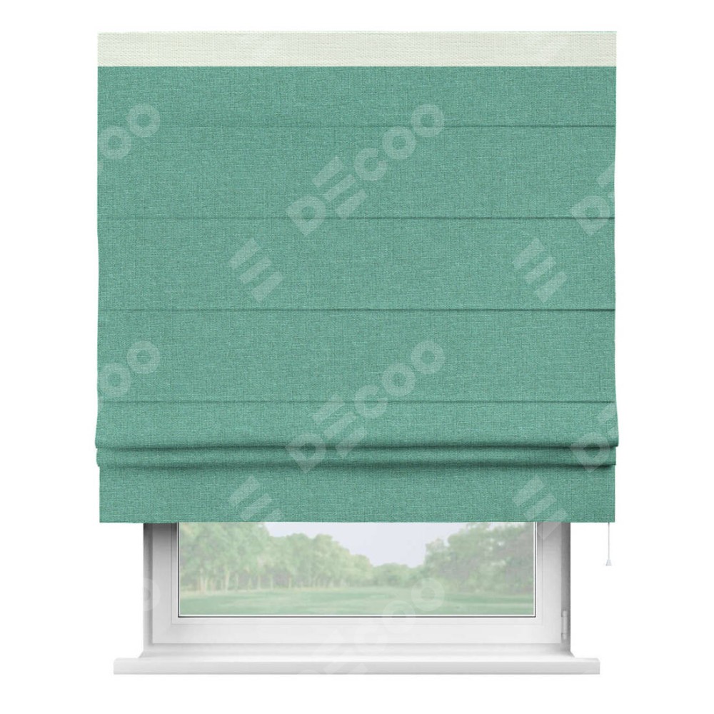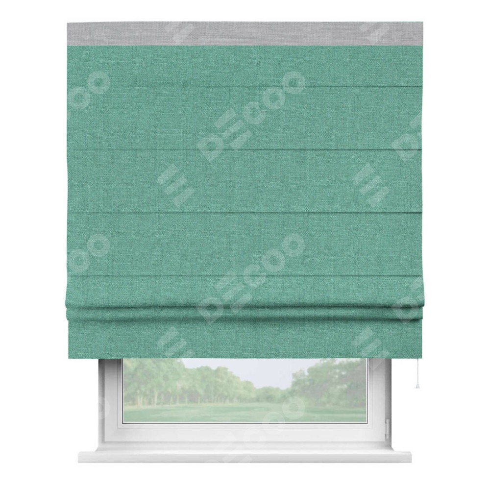 Римская штора «Кортин» с кантом Кинг, для проема, лён светло-бирюзовый