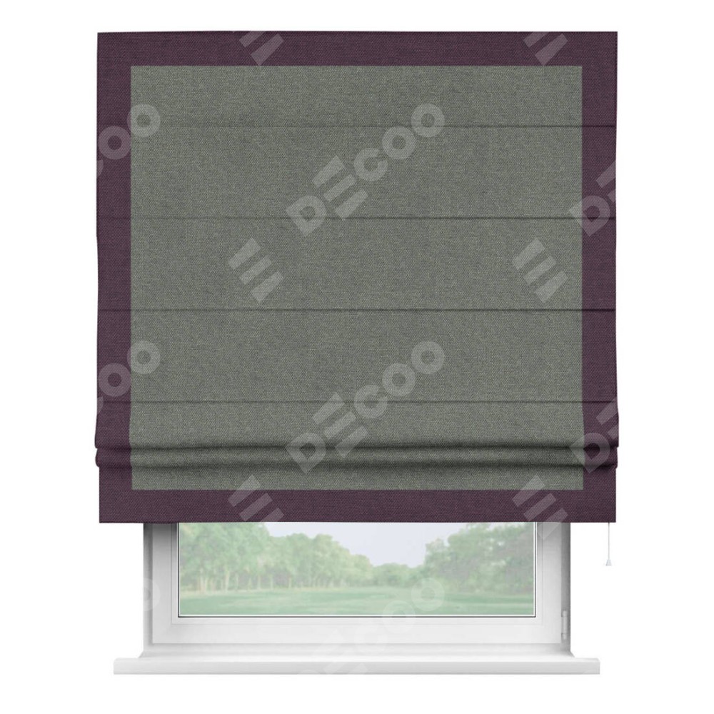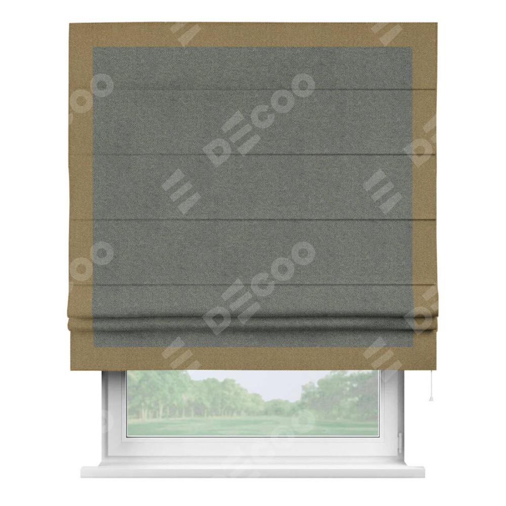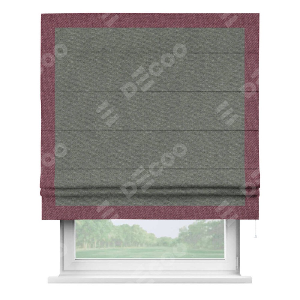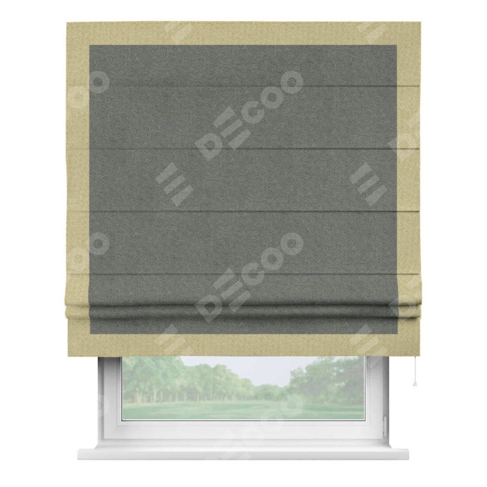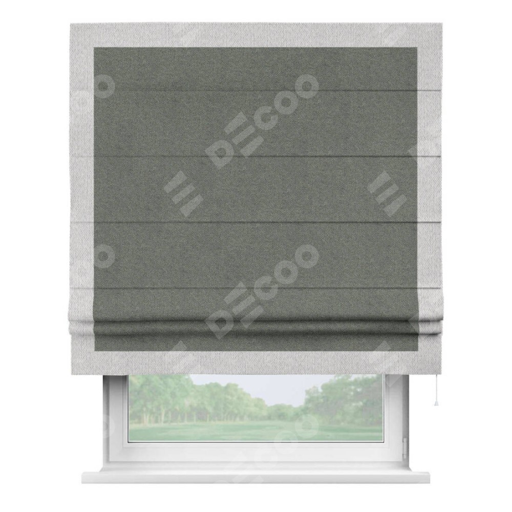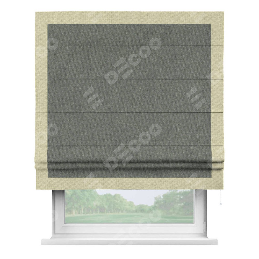 Римская штора «Кортин» с кантом Чесс, для проема, ткань лён димаут, тёмно-серый