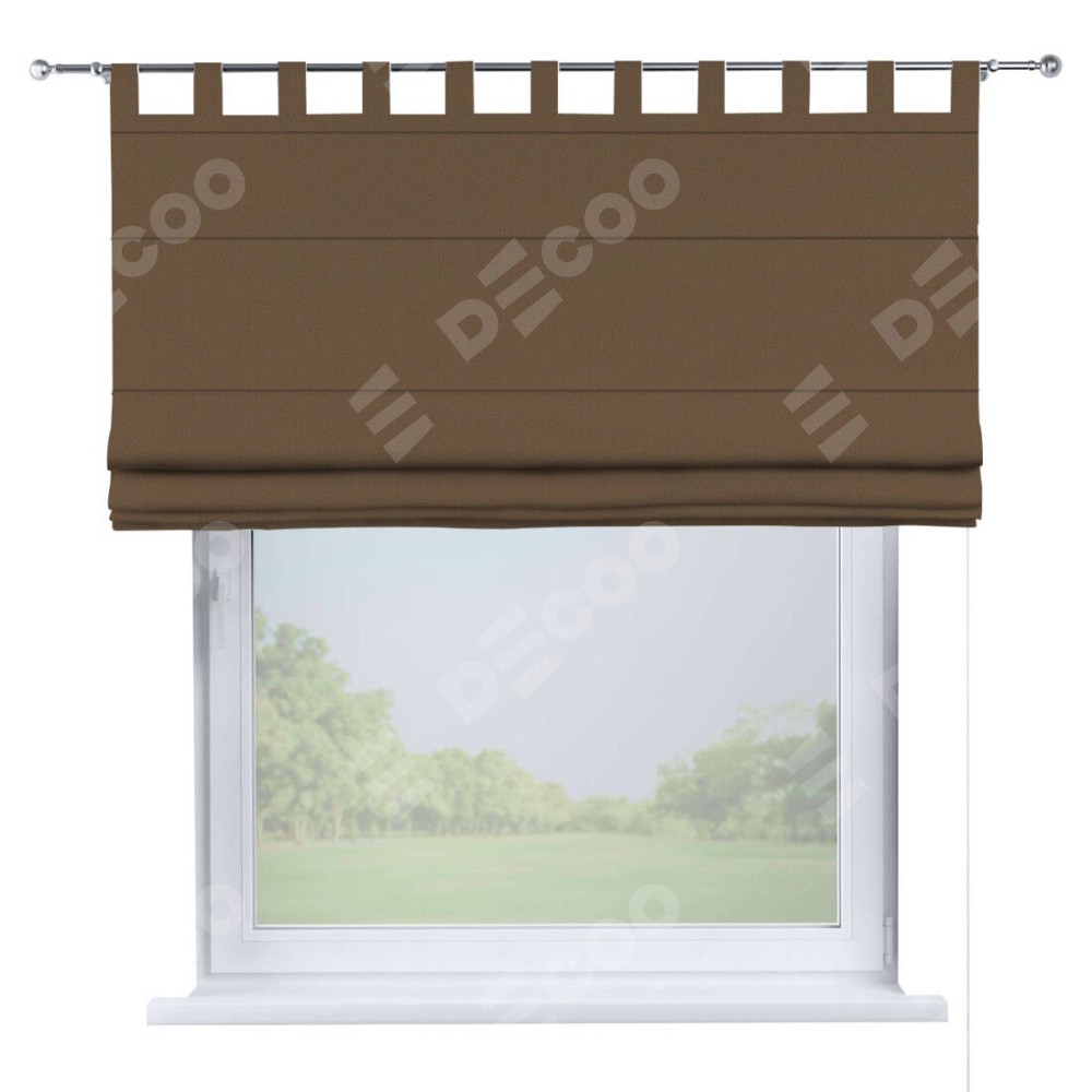 Римская штора производителя «Cortin», используется для проёма, пошита из ткани блэкаут однотонный коричневый, артикул ткани 91334. Данная модель пошита на петлях, комплектуется на выбор круглым карнизом и подходит для монтажа на стену. Римская штора на петлях имеет простую систему регулировки высоты, отличительным преимуществом данной модели является простой способ монтажа. Достаточно повесить ее на трубу и штора готова!