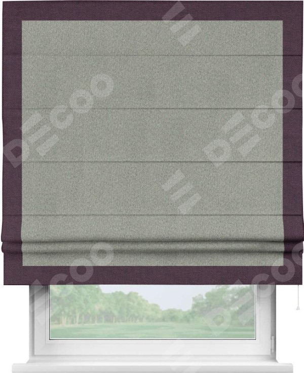 Римская штора «Кортин» для проема, лён димаут серый с кантом Чесс