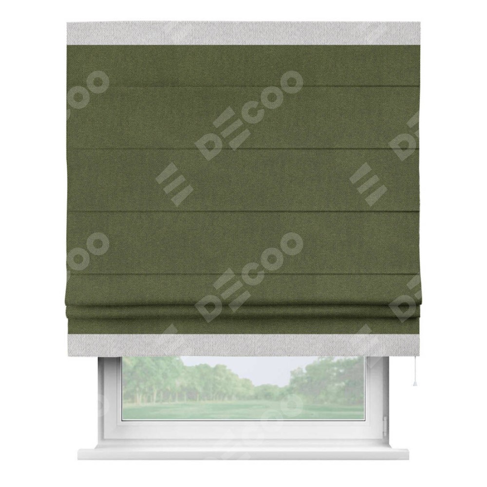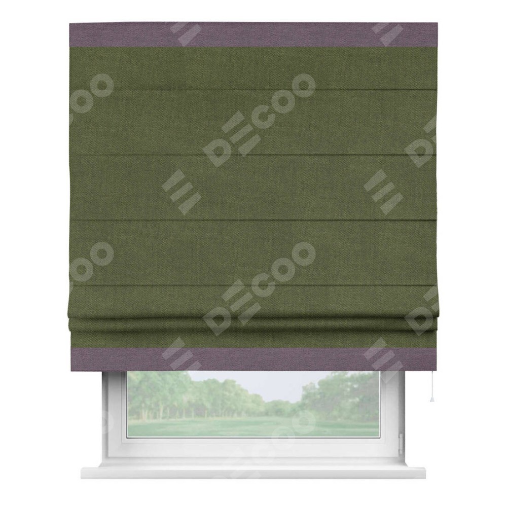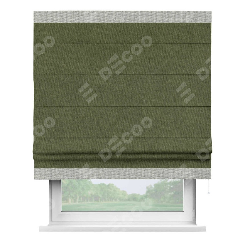 Римская штора «Кортин» для проема, лён димаут салатовый с кантом Горизонт