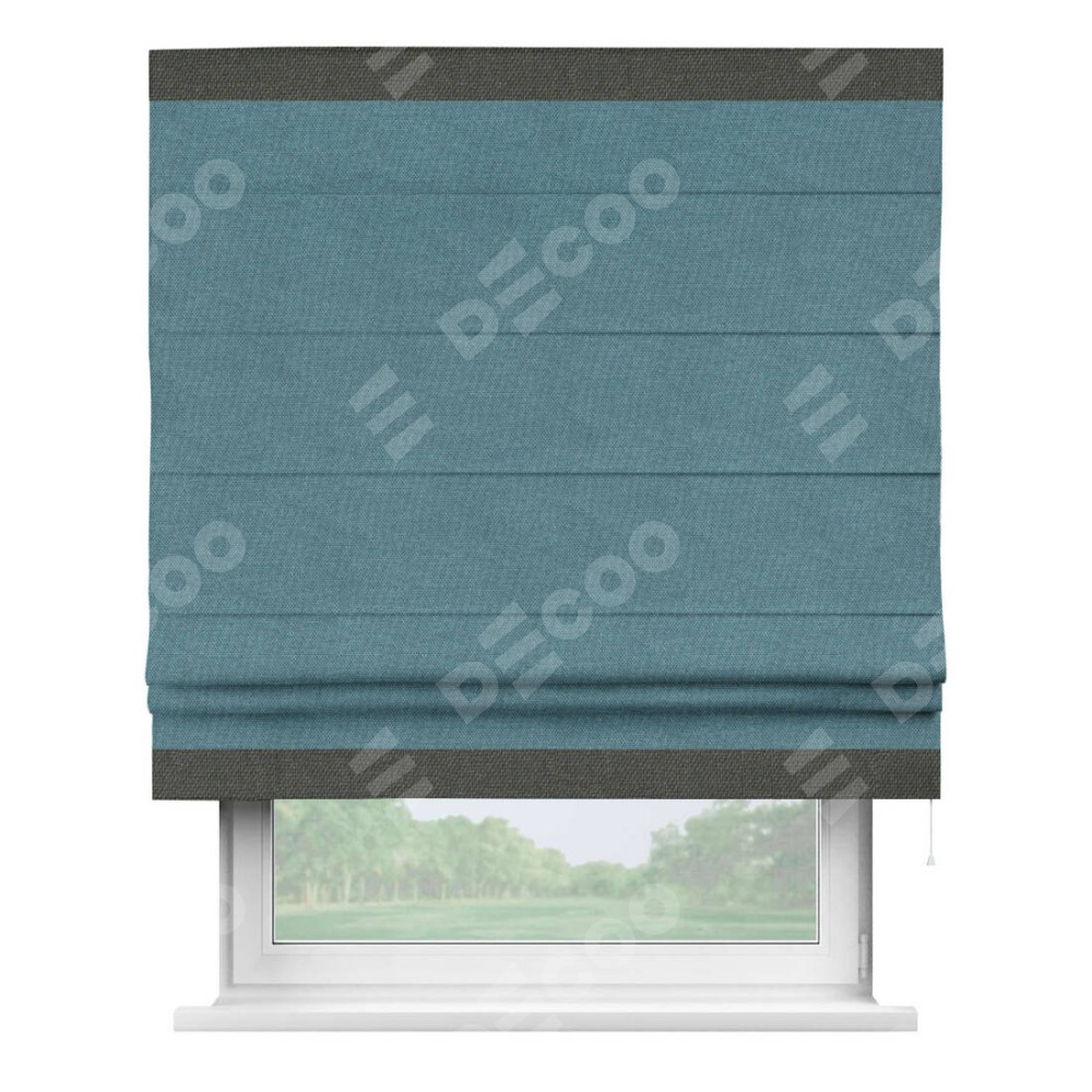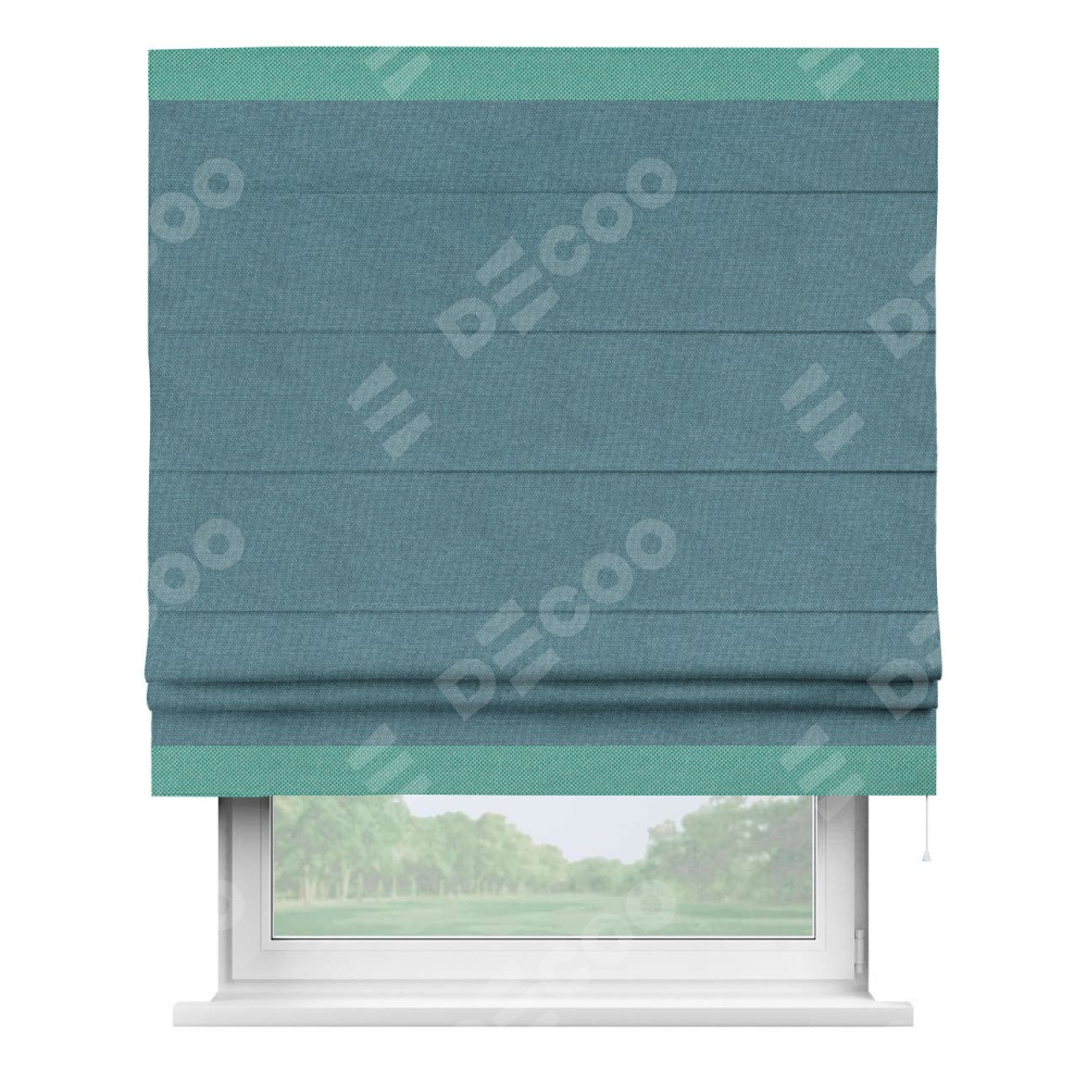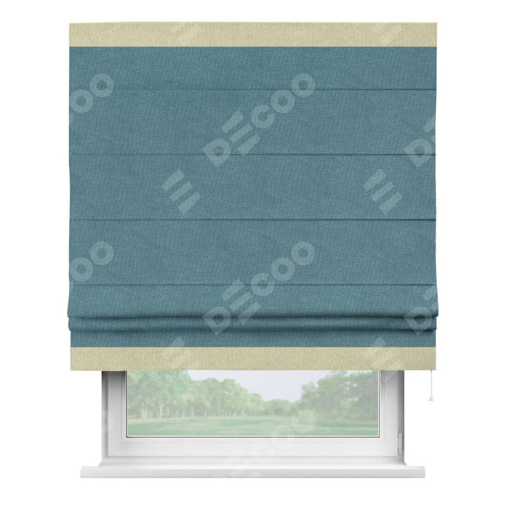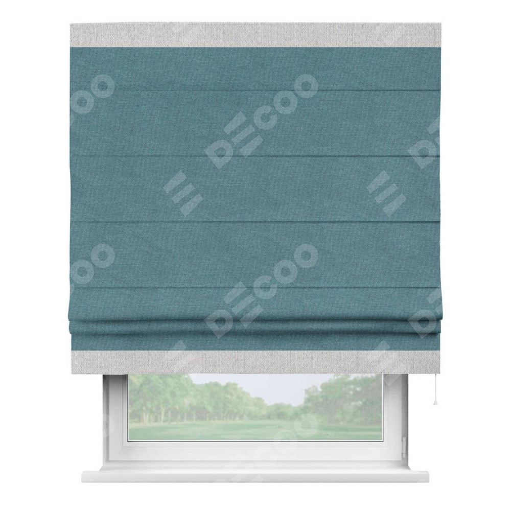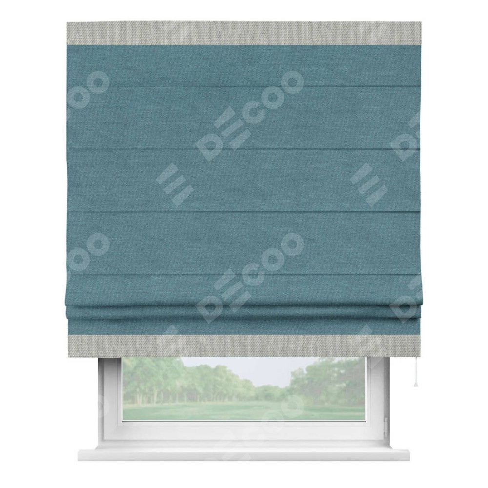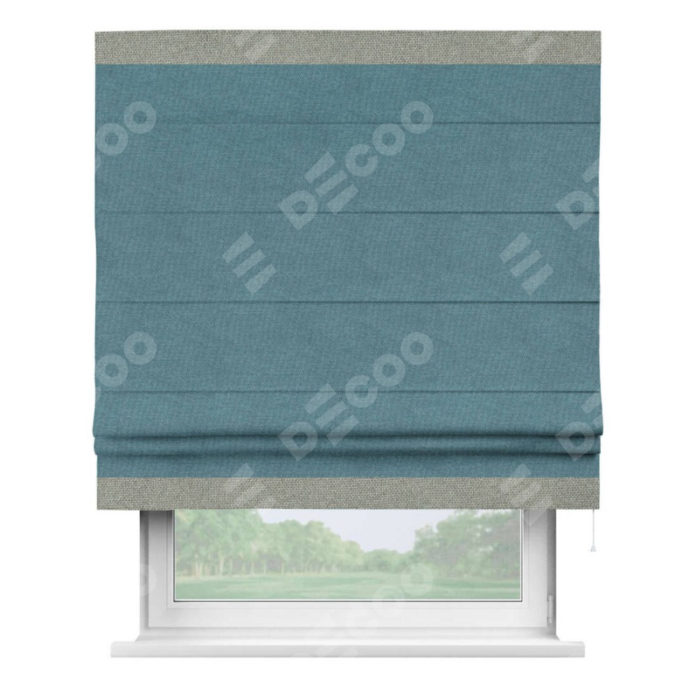 Римская штора «Кортин» для проема, лён димаут светло-синий с кантом Горизонт