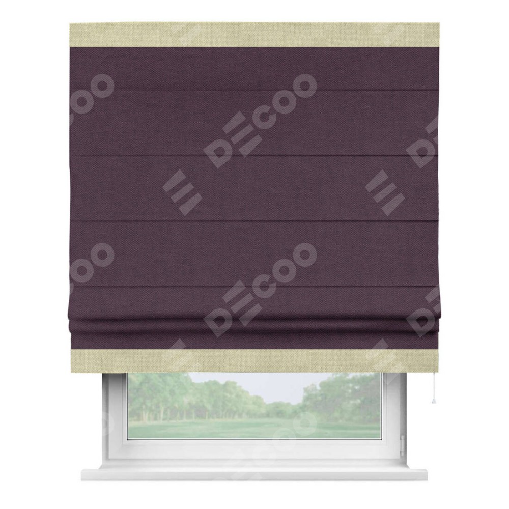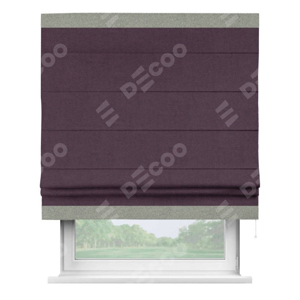 Римская штора «Кортин» для проема, лён димаут фиолетовый с кантом Горизонт