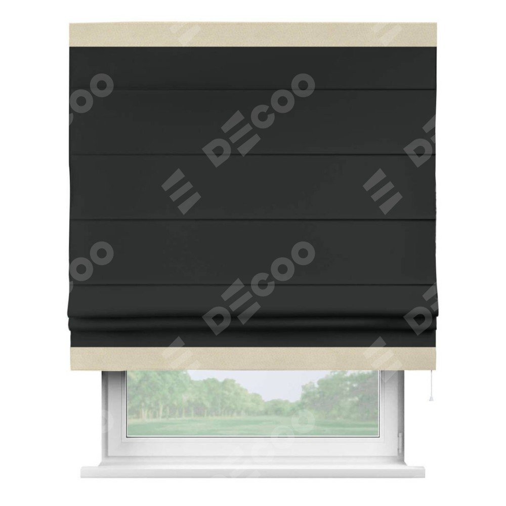 Римская штора «Кортин» для проема, блэкаут однотонный черный с кантом Горизонт