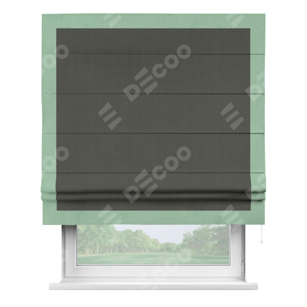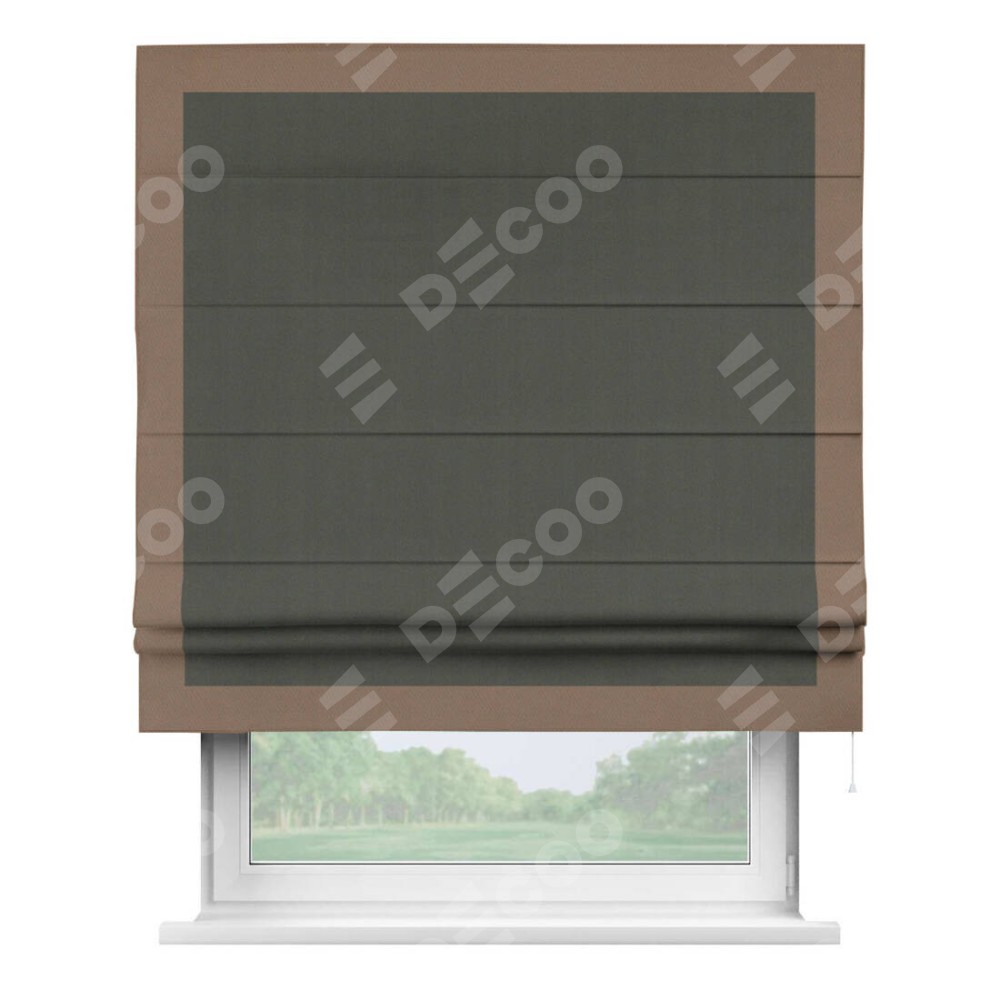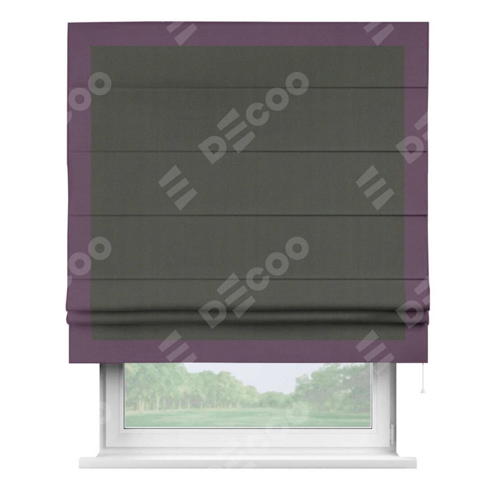 Римская штора «Кортин» для проема, блэкаут однотонный дымчато-серый с кантом Чесс