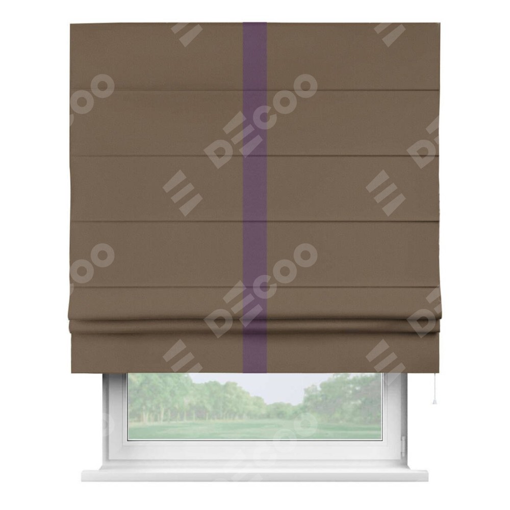 Римская штора «Кортин» для проема, блэкаут однотонный коричневый с кантом Хайвэй