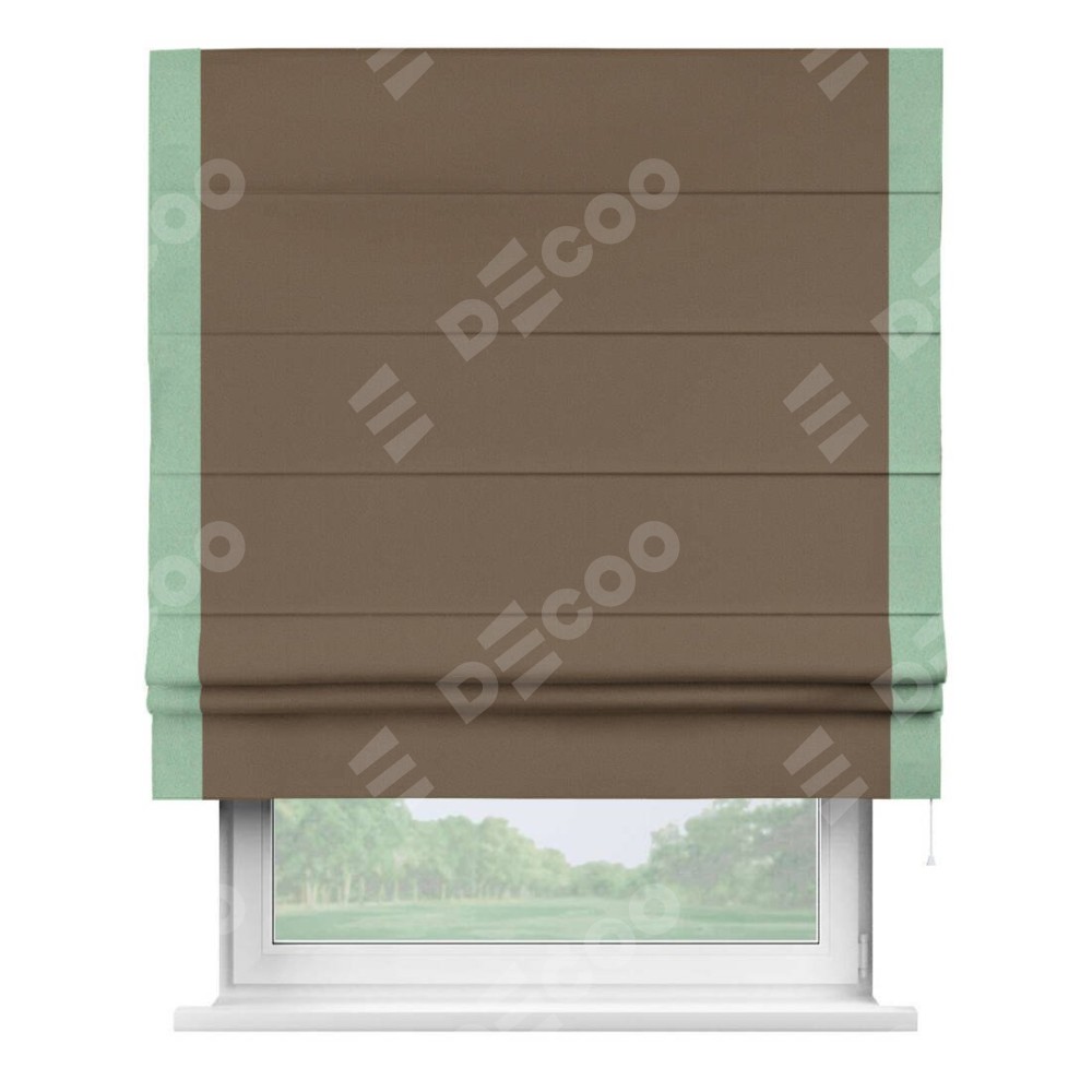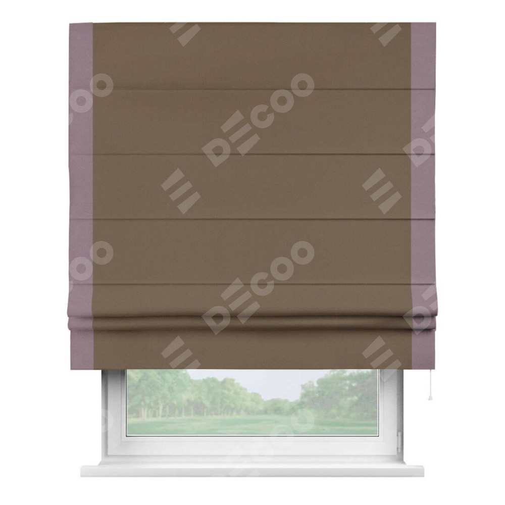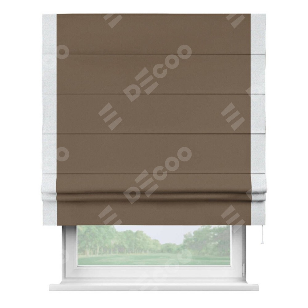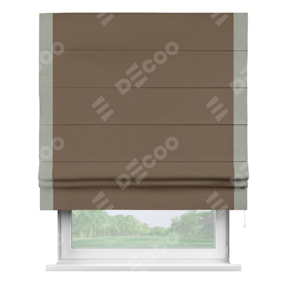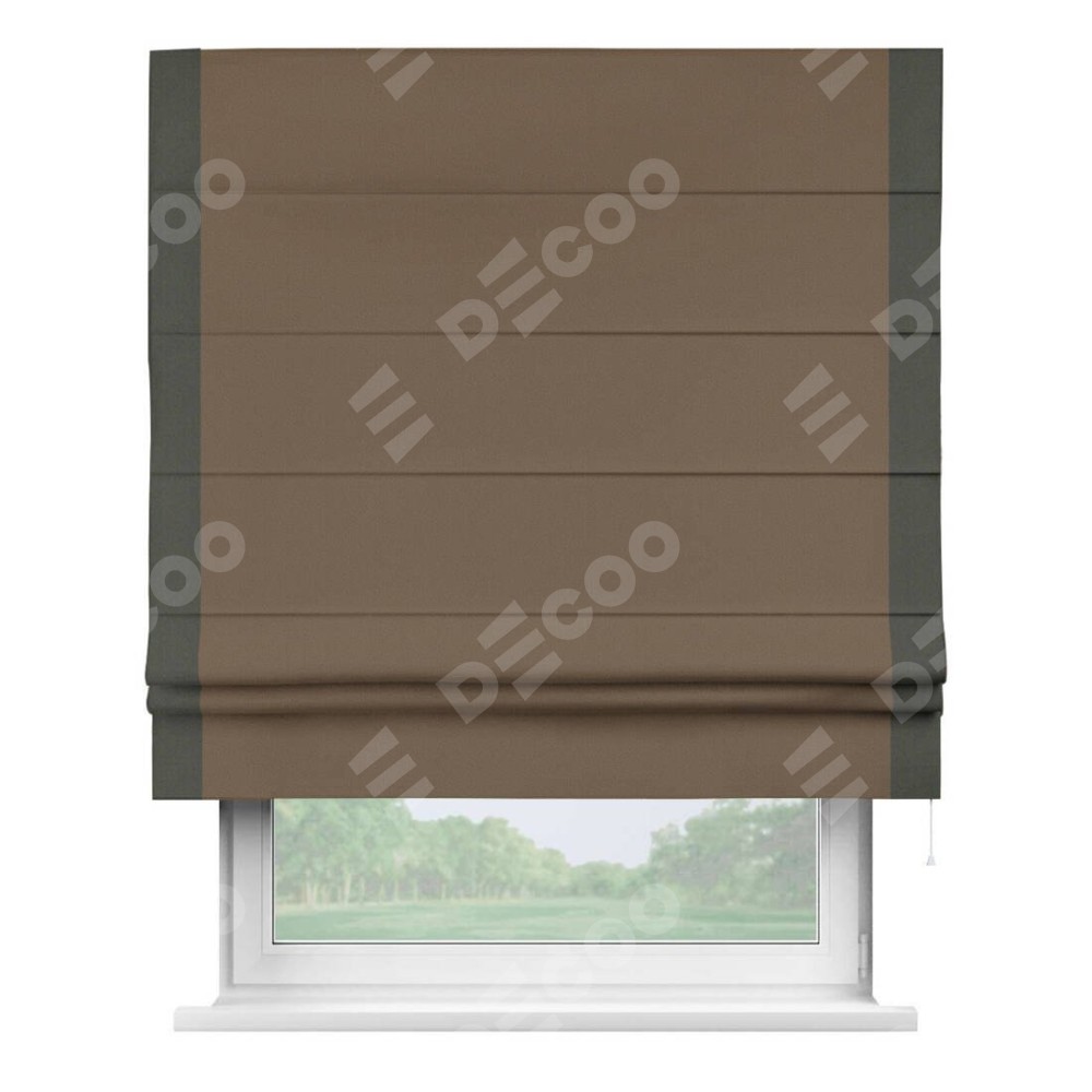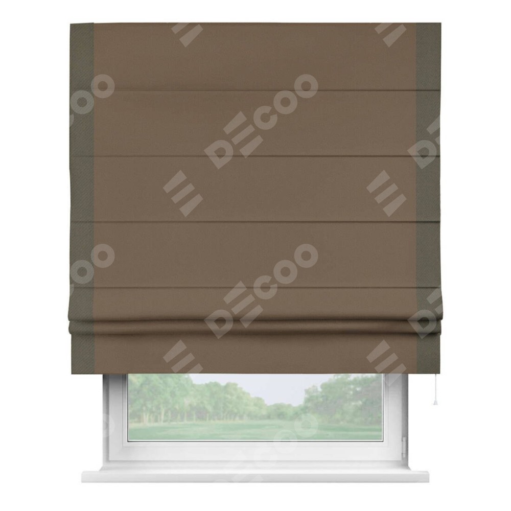 Римская штора «Кортин» для проема, блэкаут однотонный коричневый с кантом Стрим Дуо