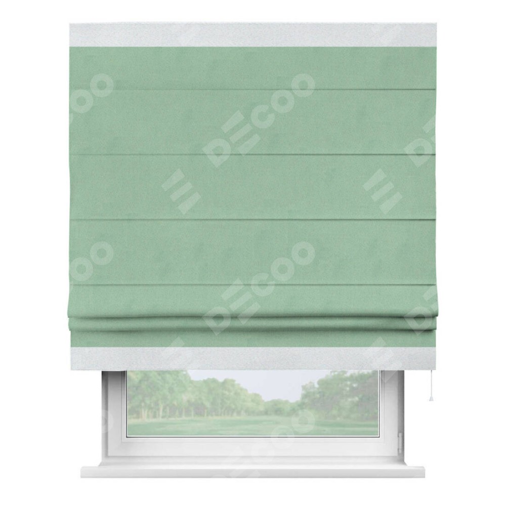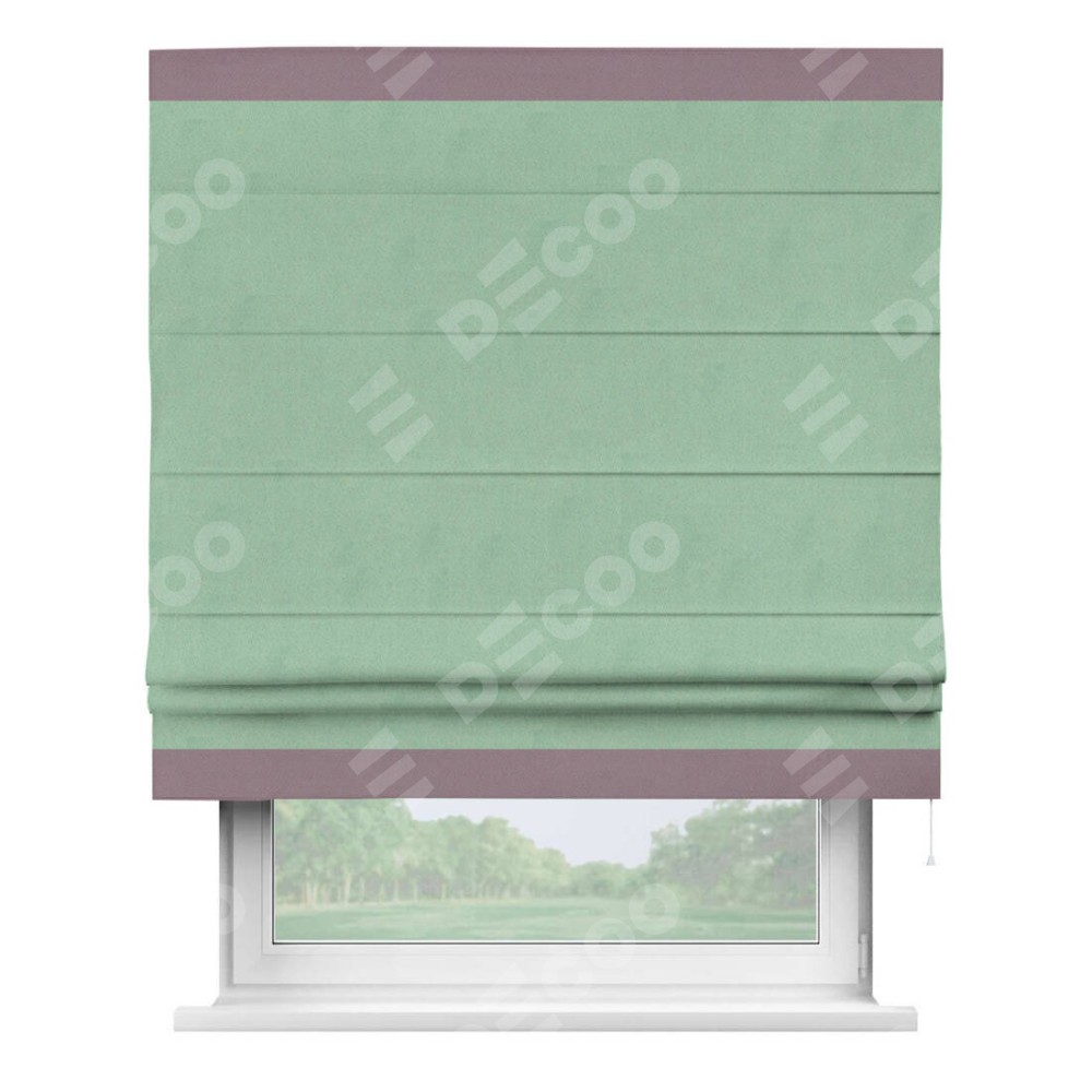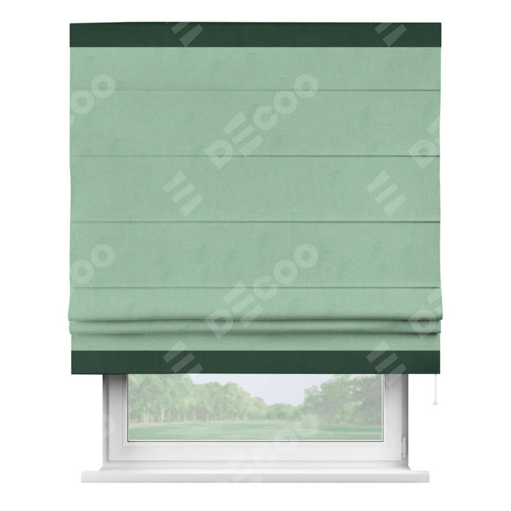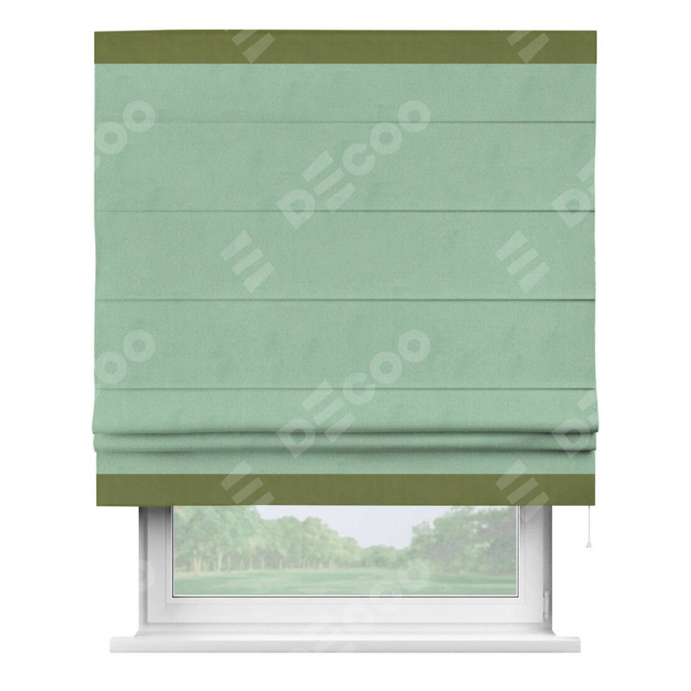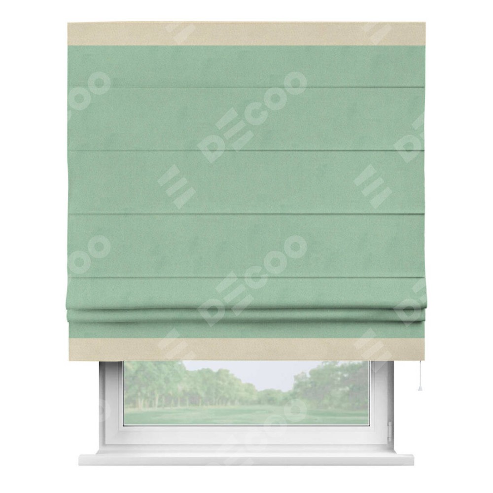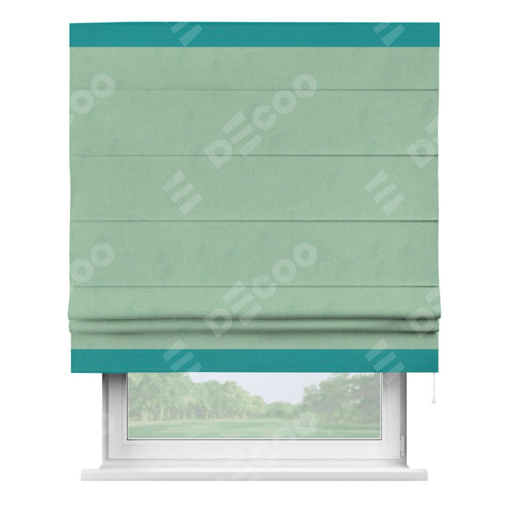 Римская штора «Кортин» для проема, блэкаут однотонный ментоловый с кантом Горизонт