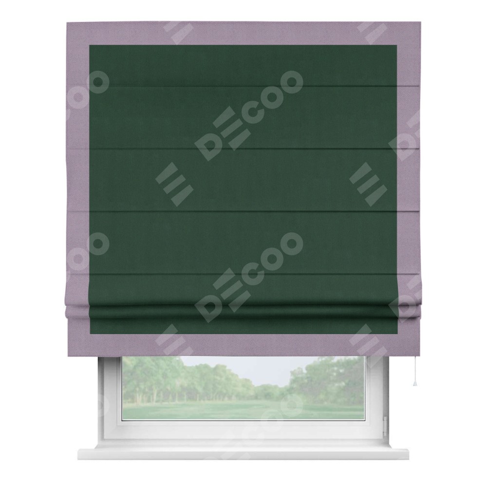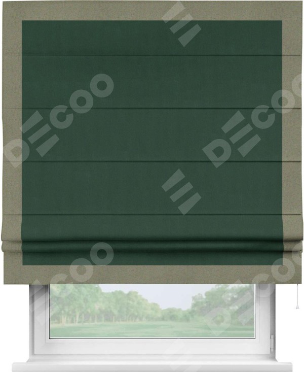 Римская штора «Кортин» для проема, блэкаут однотонный зелёный с кантом Чесс