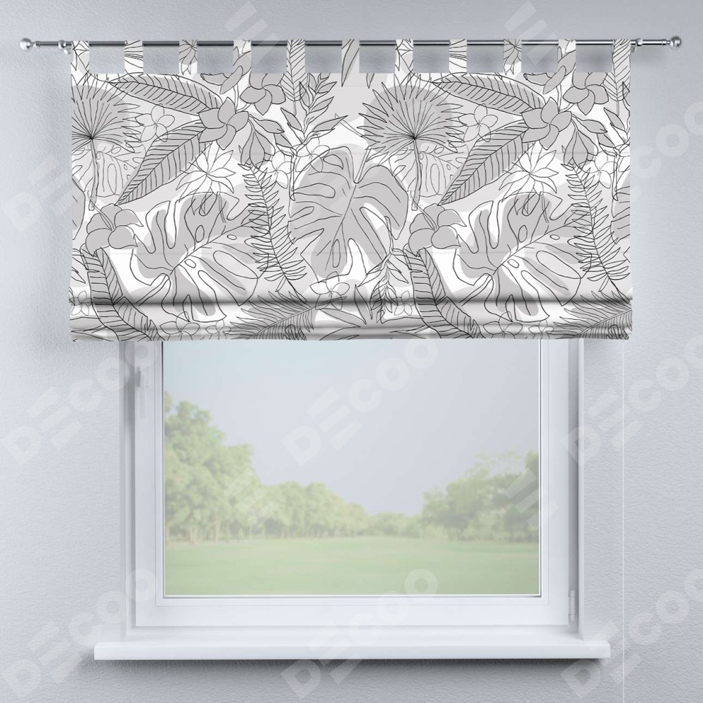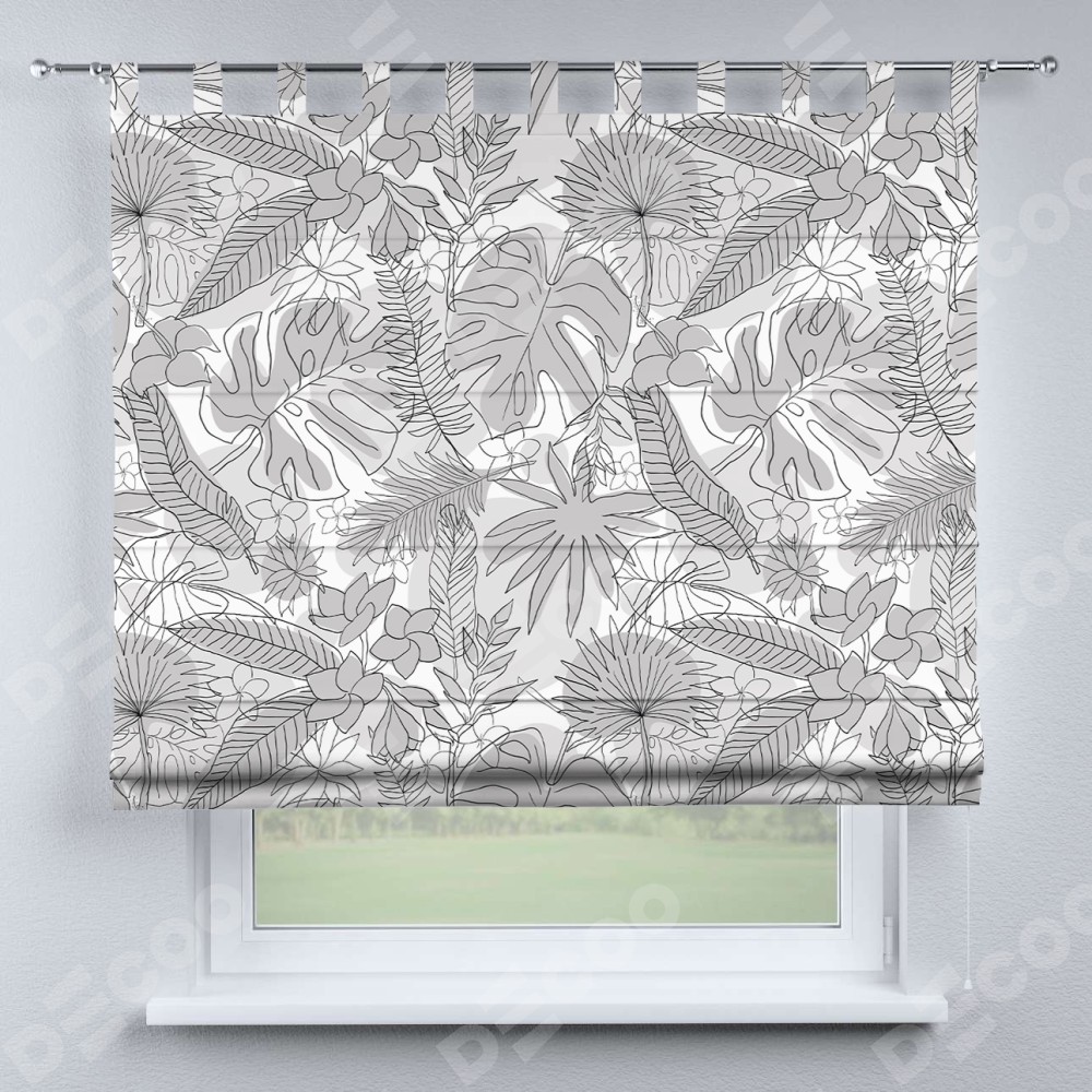 Римская штора производителя «Cortin», используется для проёма, пошита из ткани блэкаут с нанесением сублимационной печати «Тропический лес». Данная модель пошита на петлях, комплектуется на выбор круглым карнизом и подходит для монтажа на стену. Римская штора на петлях имеет простую систему регулировки высоты, отличительным преимуществом данной модели является простой способ монтажа. Достаточно повесить ее на трубу и штора готова!