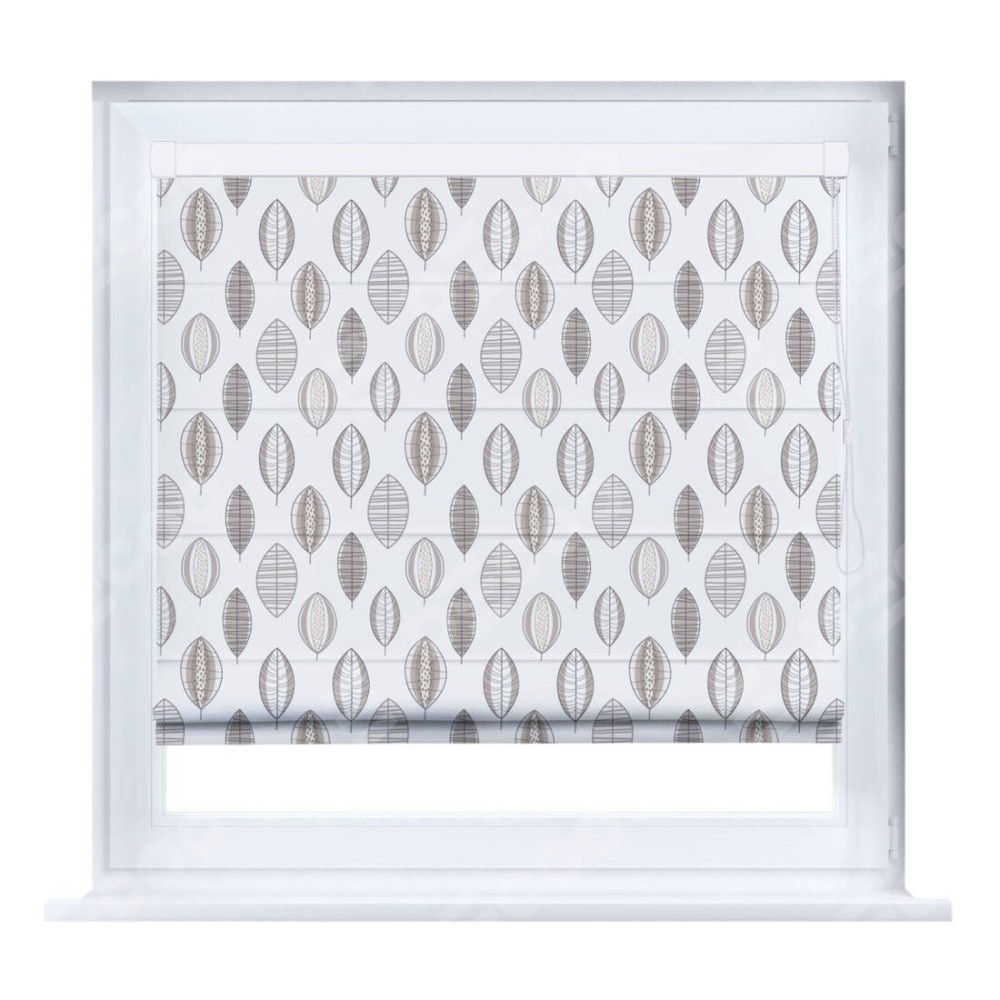 Римская штора производителя «Cortin», устанавливается на створку окна, пошита из ткани блэкаут с нанесением сублимационной печати «Кофейные листья». Штора шьётся по индивидуальным размерам, для данного типа римской шторы возможная ширина от 35 до 150 см., высота до 250 см.