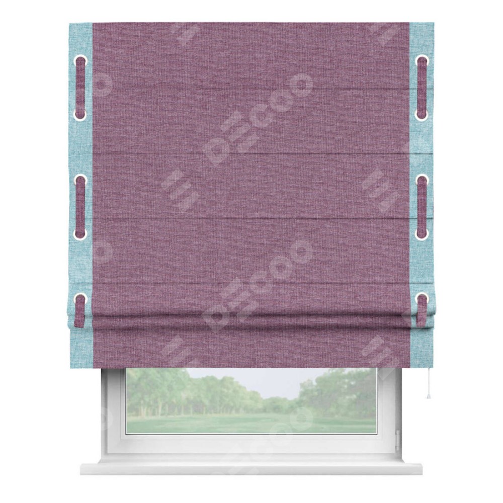 Римская штора «Кортин» с кантом Стрим Дуо (люверсы с пояском), для проема, ткань лён кашемир сиреневый