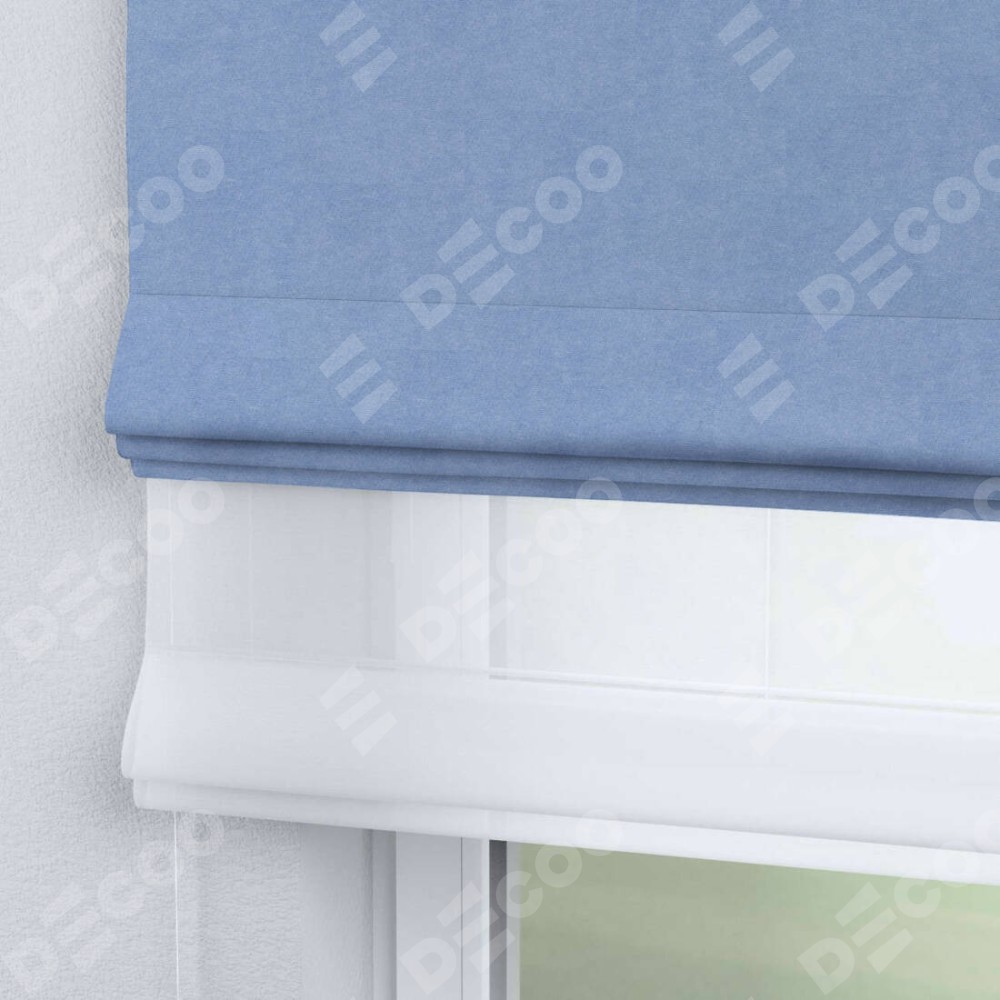 Двойная римская штора «День-ночь» от производителя Cortin предназначена для использования в проёмах. Эта штора уникальна тем, что состоит из двух полотен. На лицевой стороне находится вельвет васильковый (артикул: 33799), обеспечивающий мягкое затемнение. В комплект также входит вторая ткань — легкий белый тюль (артикул: V-01), который добавляет изящества и легкости оформлению окна. Кроме того, доступны и другие разновидности ткани тюль, выбор которых доступен по ссылке .
