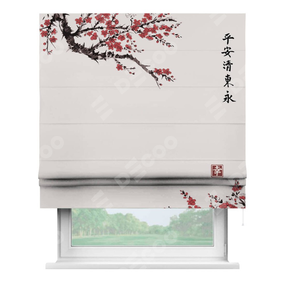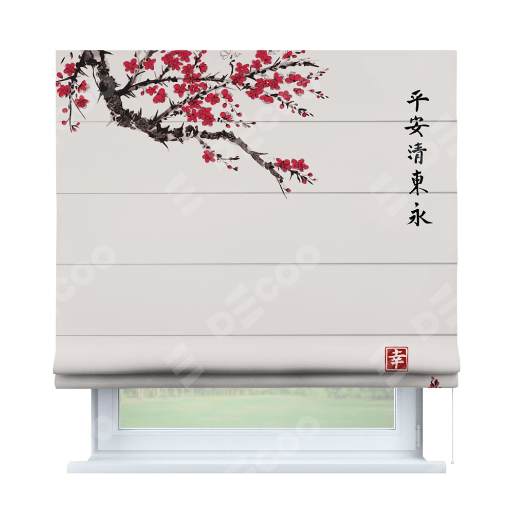 Римская штора «Кортин» для проема «Цветущая сакура»