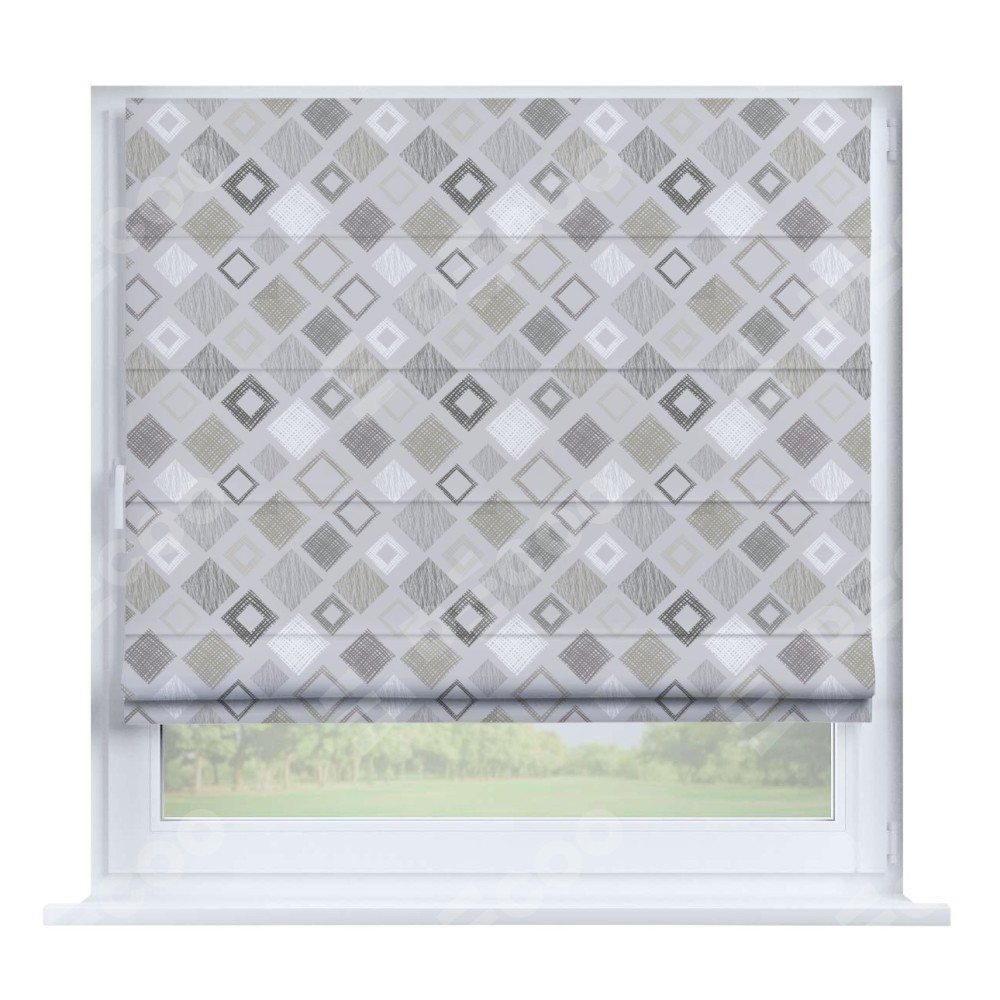 Римская штора производителя «Cortin», устанавливается на створку окна, пошита из ткани блэкаут с нанесением сублимационной печати «Квадро». Штора шьётся по индивидуальным размерам, для данного типа римской шторы возможная ширина от 35 до 150 см., высота до 250 см.