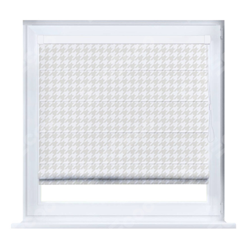 Римская штора производителя «Cortin», устанавливается на створку окна, пошита из ткани блэкаут с нанесением сублимационной печати «Гусиные лапки» молочный». Штора шьётся по индивидуальным размерам, для данного типа римской шторы возможная ширина от 35 до 150 см., высота до 250 см.