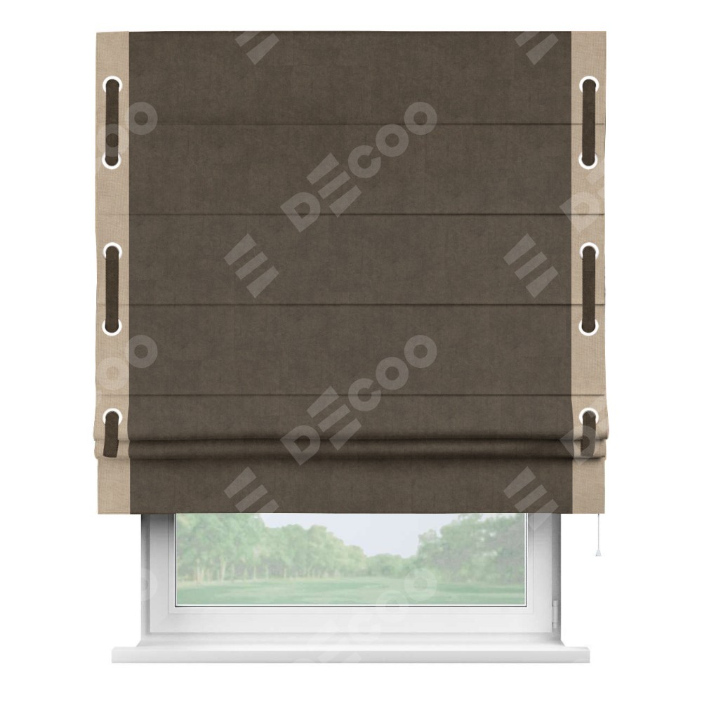 Римская штора «Кортин» для проема, канвас коричневый, с кантом Стрим Дуо (люверсы с пояском)